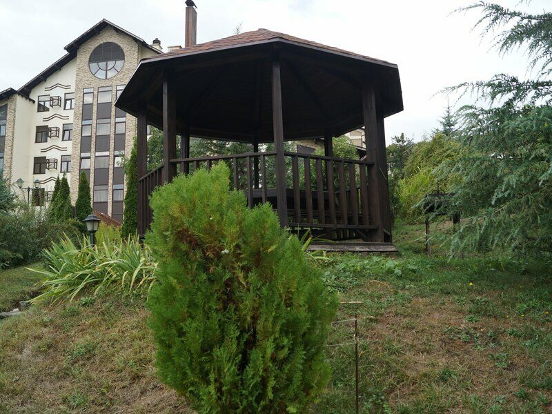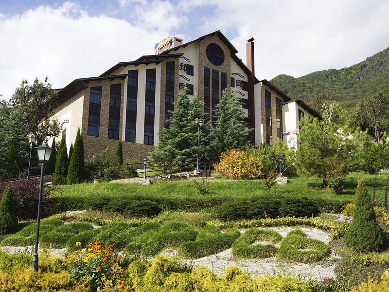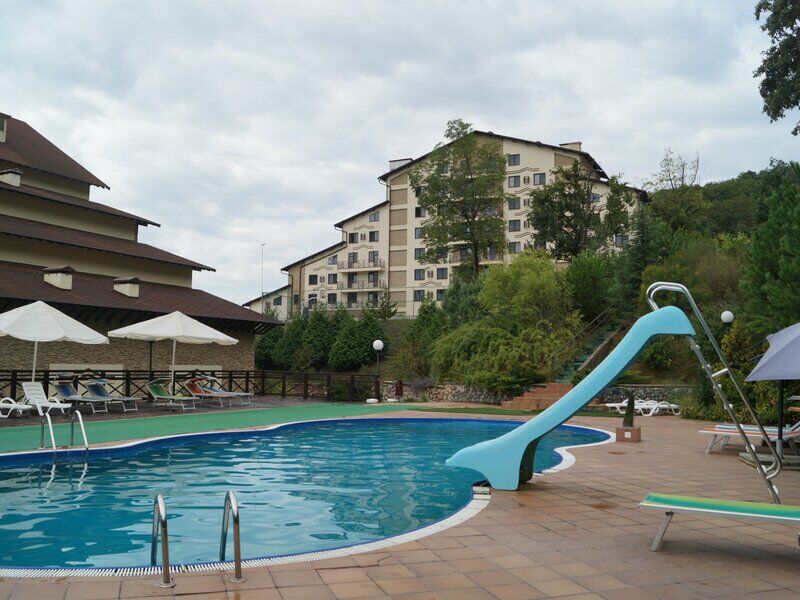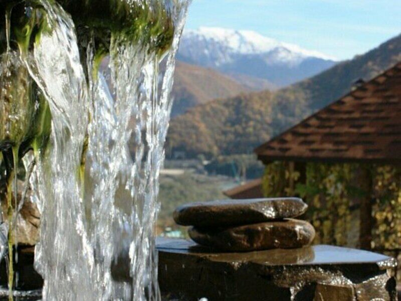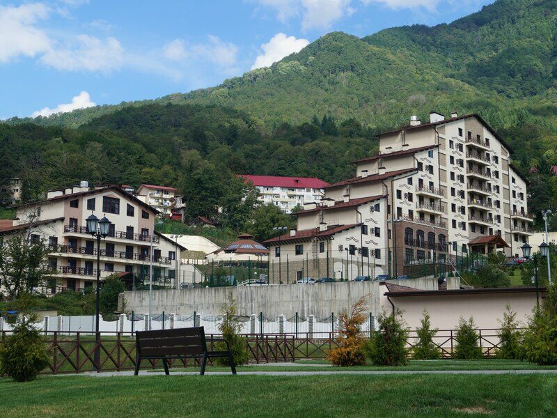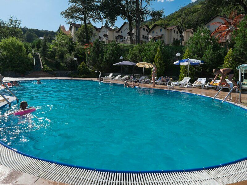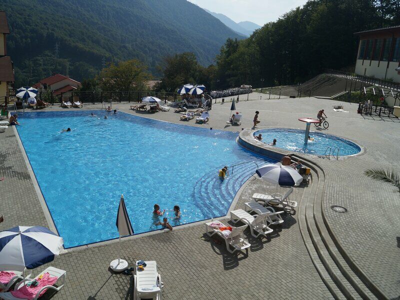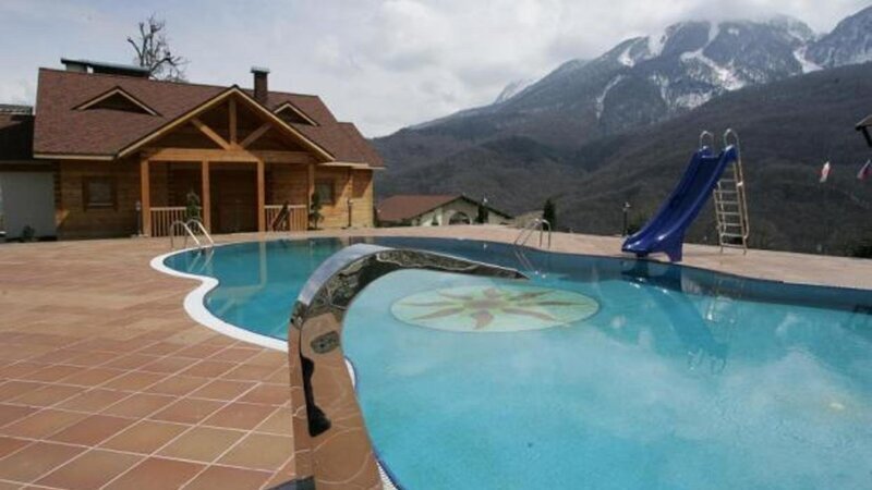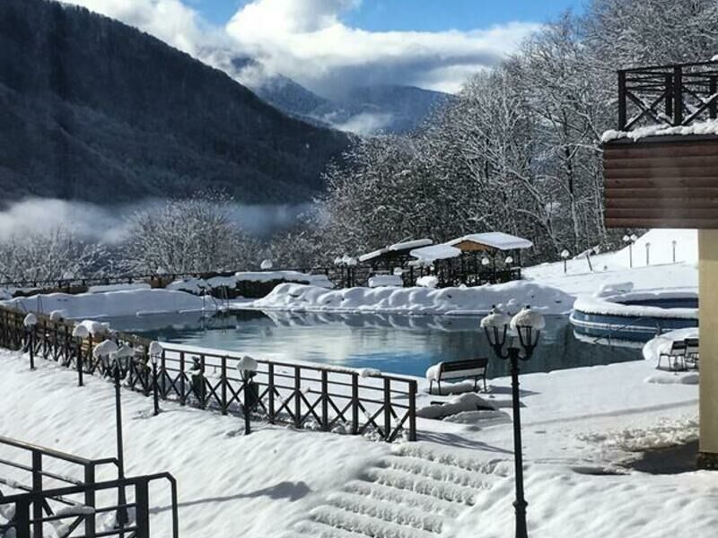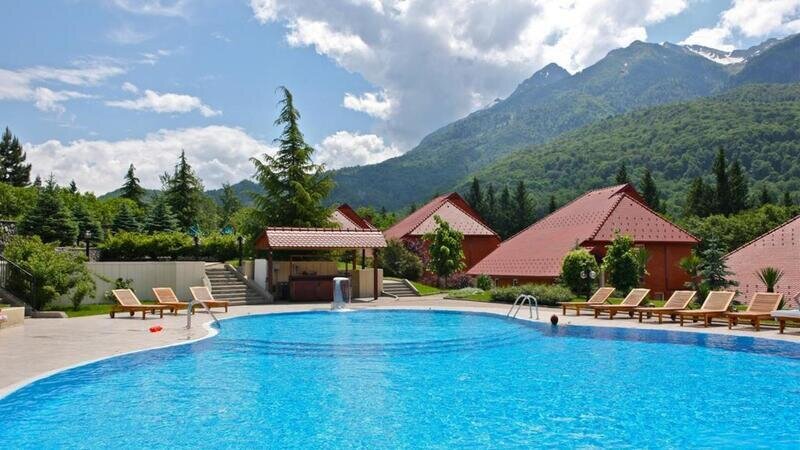 Из плюсов: Большая ухоженная красивая и зелёная территория, два бассейна для взрослых и один бассейн для детей, все бассейны отапливаемые, чистые. Много лежаков у бассейна, хватало всем. Изумительный вид на горы!🏔