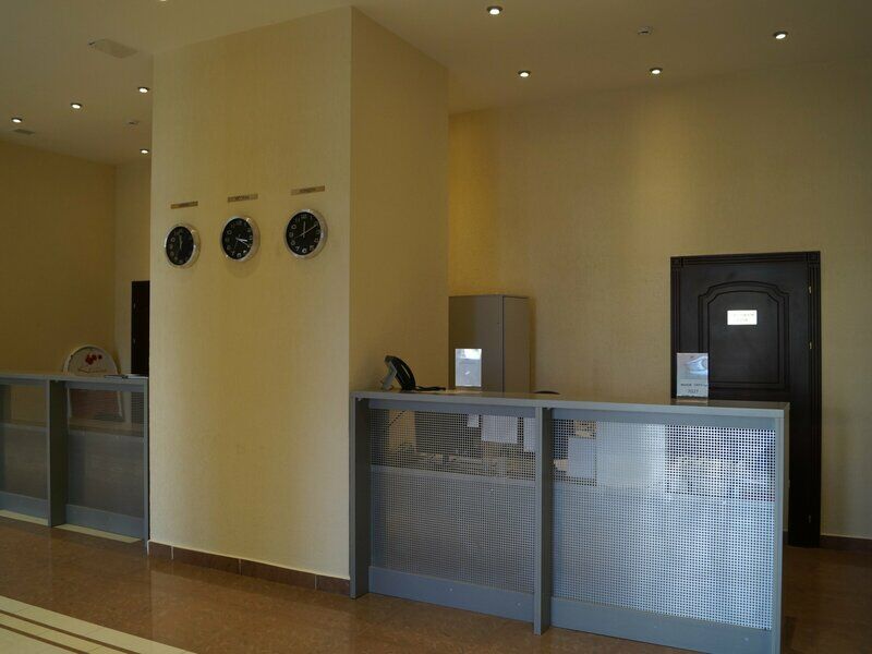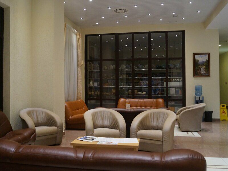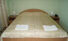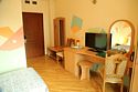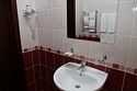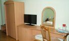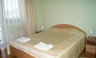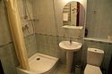 Из минусов: Номерной фонд старый, мебель и сантехника требуют замены. У нас была двуспальная кровать, которая по факту представляла из себя две сдвинутые односпальные кровати, но это не критично. Сам номер очень маленький! Душевая кабина - это лейка и занавески, естественно вода растекалась во все стороны и полы в санузле были мокрые.