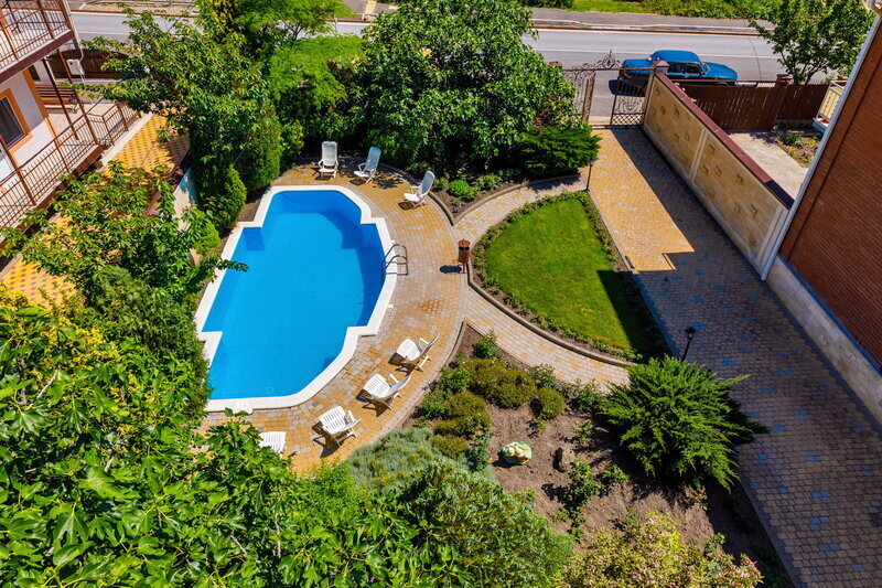 Гостевой дом состоит из трех корпусов, каждый из которых имеет свой бассейн.