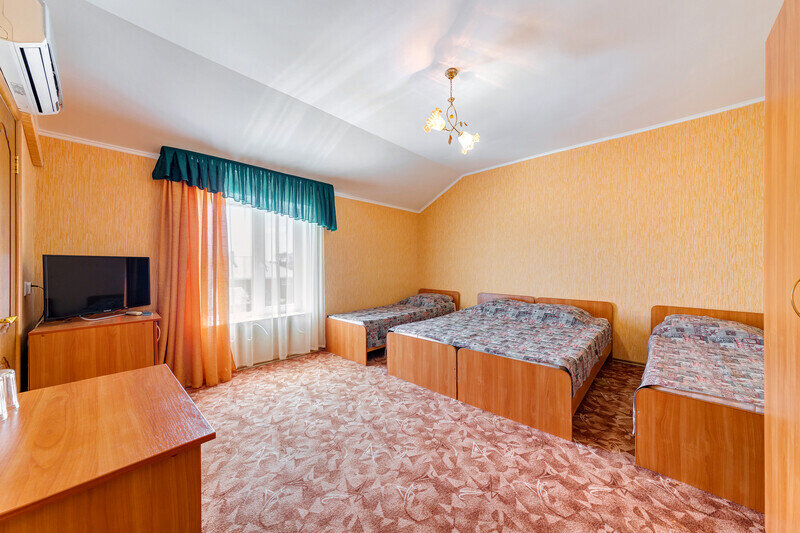 с/у, душ, ТВ, Х, К, основные места - одна двуспальная кровать или две односпальных кровати и один раскладной диван