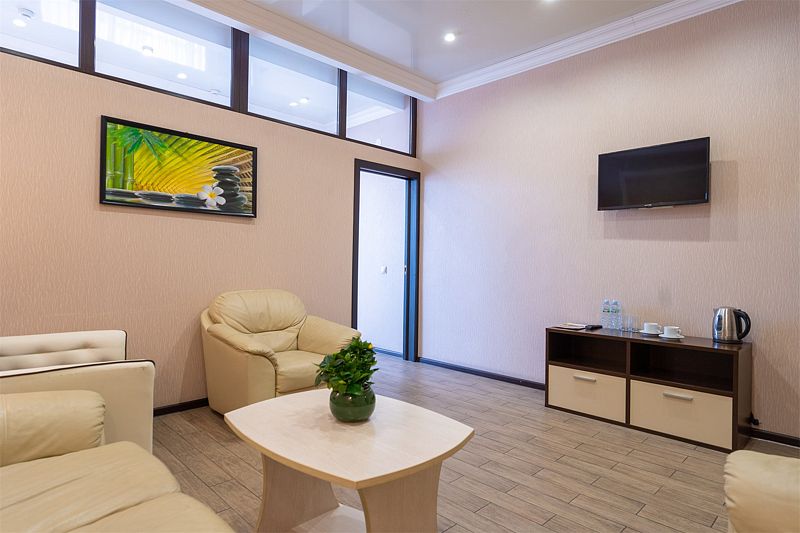 Просторный Трехкомнатный номер площадью 60 кв м с двумя просторными кроватями. Размещение для 4 гостей с возможностью установки дополнительного места для 2 гостей.