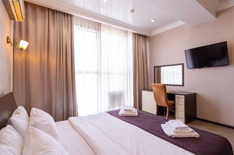 Стандартный улучшенный номер площадью 25 кв м с двумя односпальными кроватями или одной просторной кроватью. Размещение для 2 гостей с возможностью установки дополнительного места.