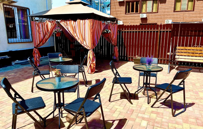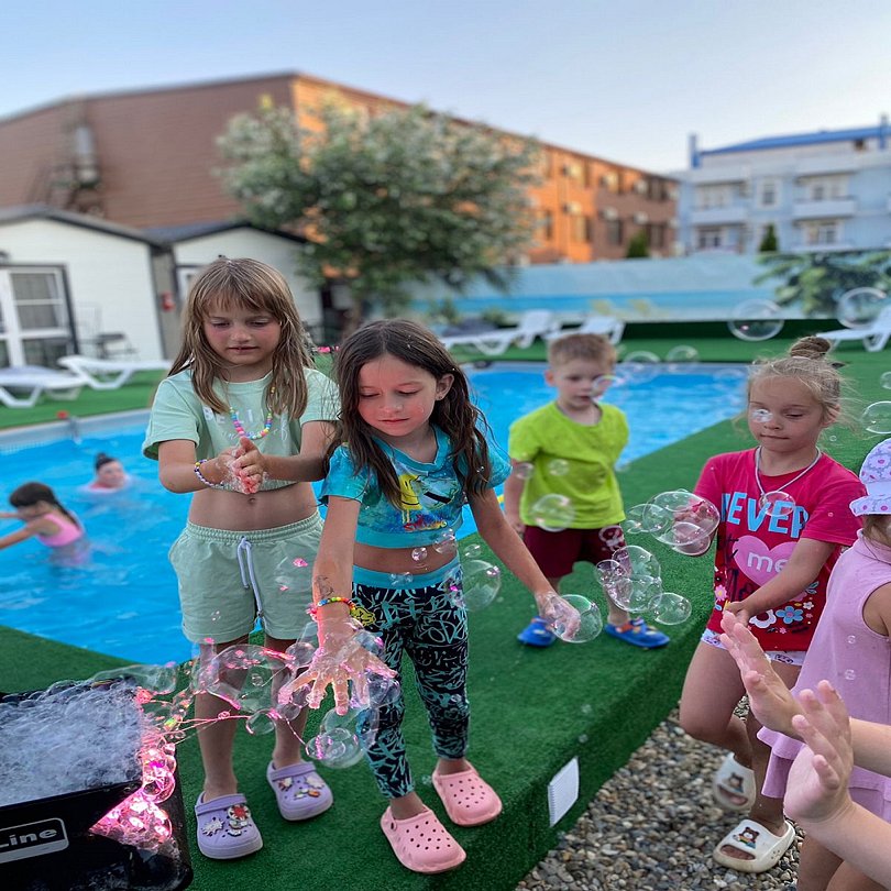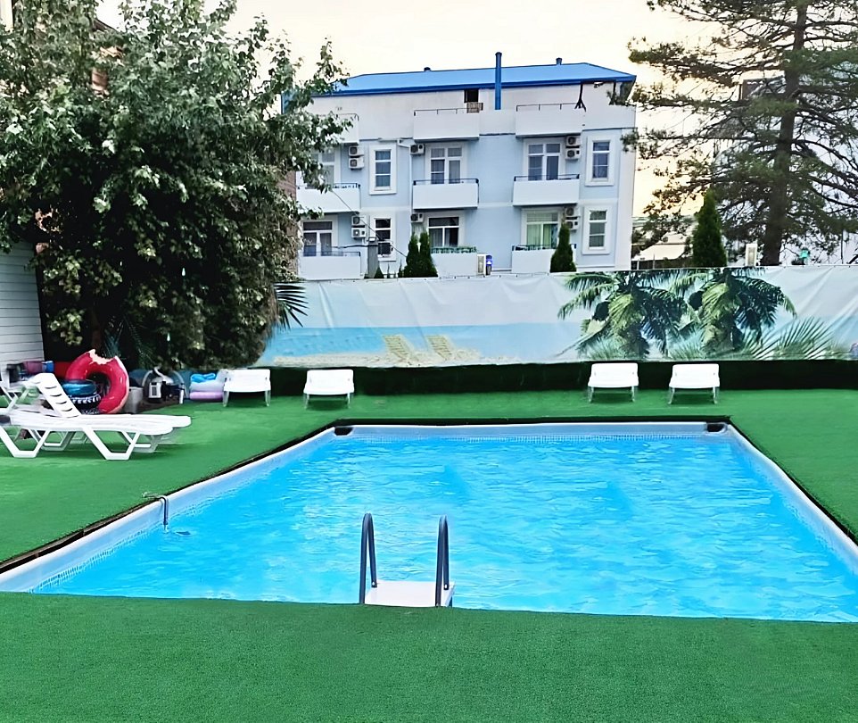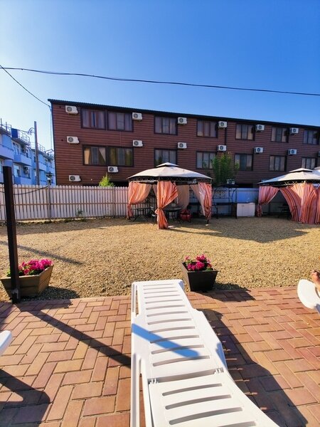 Для гостей на территории имеется открытый бассейн каркасный углублённый, проходит анимация единожды в неделю, есть детская площадка, мангальная зона, большая, оснащенная всем необходимым общая кухня, а также бесплатный Wi-Fi на всей территории базы отдыха. Также в ближайшей доступности множество столовых, кафе, ресторанов, магазинов, аптек и других развлечений.