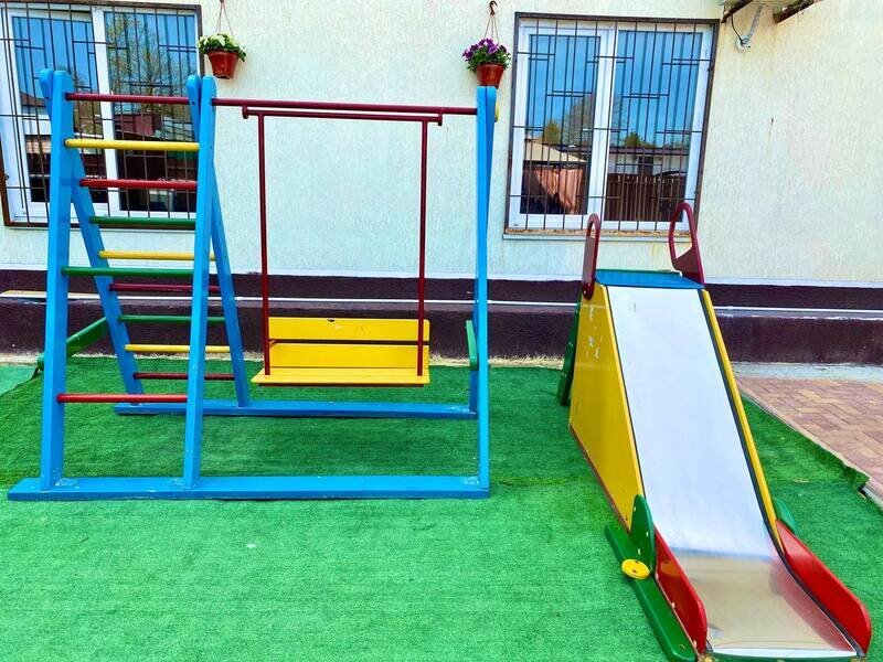 Для детей на территории нашего комплекса есть всё самое необходимое для развлечения и отдыха: небольшая детская площадка, батут, настольный теннис.
