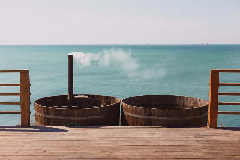 В стоимость бани входит парилка; купели с холодной и подогреваемой водой, банные шапочки, простыни, и тапочки, лаунж-зона на террасе, чай, мед/варенье, парковка.