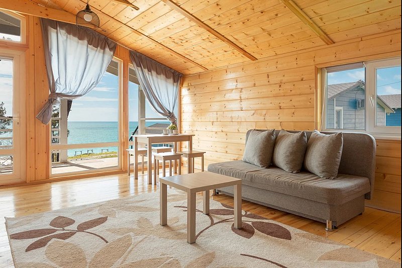 Уютные деревянные коттеджи различной вместимости предлагают гостям максимальный комфорт и уединение с природой. Внутренняя отделка из натурального дерева, удобная мебель, телевизор, кондиционер, Wi-Fi и собственный санузел с душем и туалетными принадлежностями создадут атмосферу тепла и уюта.
