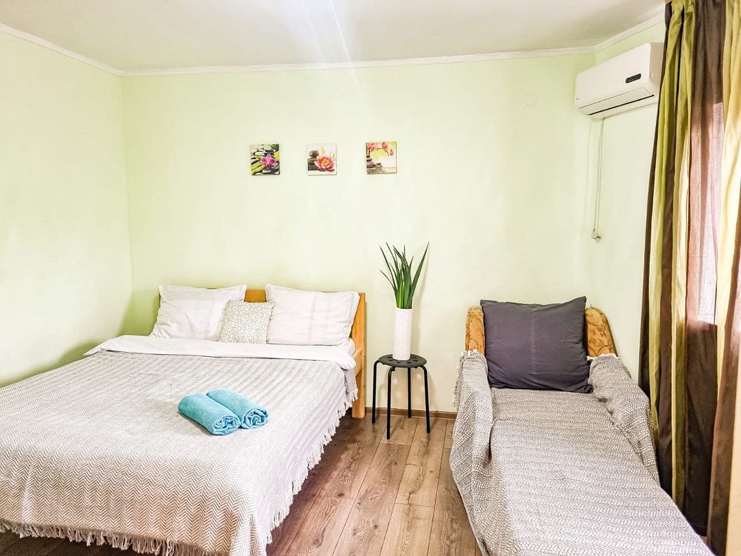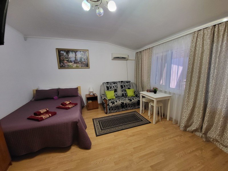 Путешествие с семьейНеожиданная поездкаВыбирали место подешевле недалеко от моря. В этом гостиничном доме сочеталось всё: от моря пешком минут 10-15, в номере есть все удобства: душ, туалет, холодильник, кондиционер, телевизор. Большего нам и не нужно было. Наш номер был рядом с кухней, так что спокойно готовили завтрак и ужин. С этим проблем никаких не возникало. Недалеко есть супермаркет, детские площадки (работают только после пяти вечера, так как жарко днем), столовые, в которых обедали и ни разу не отравились. Один минус - с морем нам не повезло, всё в тине было. Но если отплыть на матрасе метров 100 от берега, то вода прозрачная, видны медузы. Ночью была куча комаров, так что спать приходилось с кондиционером, что не очень удобно с детьми. Но как и море это не проблема отеля, а просто наблюдение.