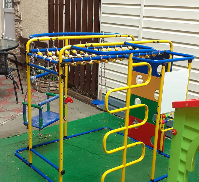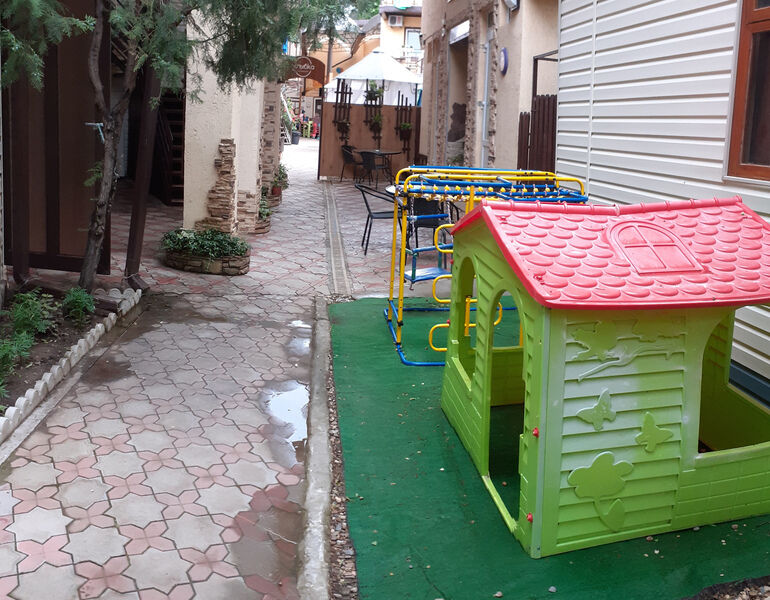На ухоженной, огражденной территории гостевого дома расположены три жилых домика, столовая, несколько детских площадок, беседок, мангал и другие зоны отдыха. Номера предназначены для гостей разной категории, но это не отражается на наличии элементарных удобств: все комнаты хорошо меблированы, а в номерах есть собственные санузлы с ванной или душем. В набор бытовой техники входят кондиционер и холодильник, телевизор. Wi-Fi доступен на территории гостевого дома.
