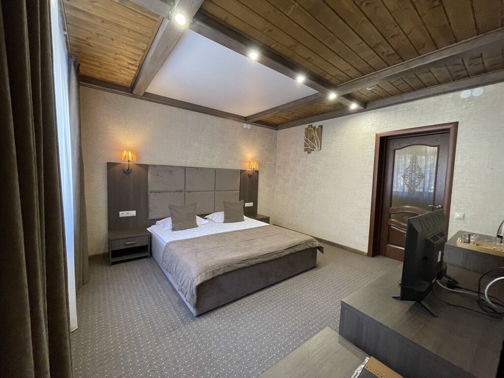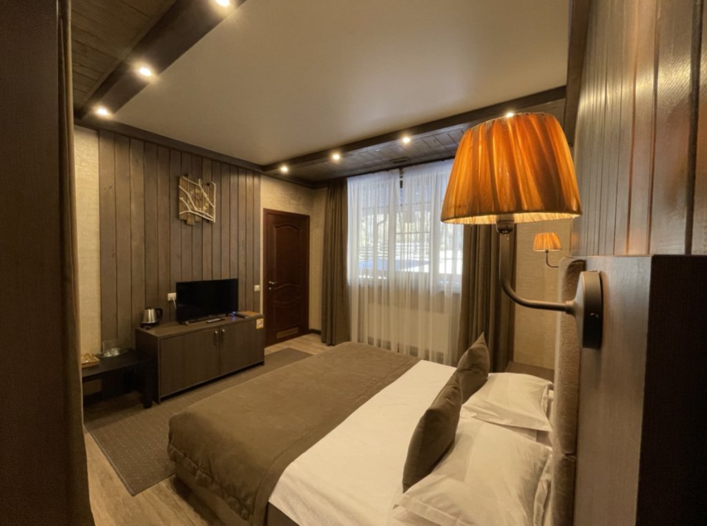Номер уютно обставлен и оснащён необходимым, чтобы отдохнуть после долгого и насыщенного дня. Имеется телевизор. Оснащение зависит от выбранной категории номера.