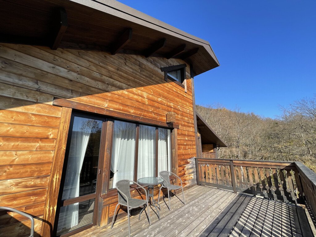 Номер для четверых с одной большой двуспальной кроватью и одним двуспальным раскладным диваном, шкафом, мини-холодильником и телевизором, а также своей большой террасой и видом на плато Лаго-Наки. В номере своя ванная комната.