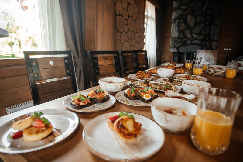 Атмосфера ресторана располагает к тому, чтобы чинно распить бокал любимого вина, наслаждаясь видами бескрайних гор.