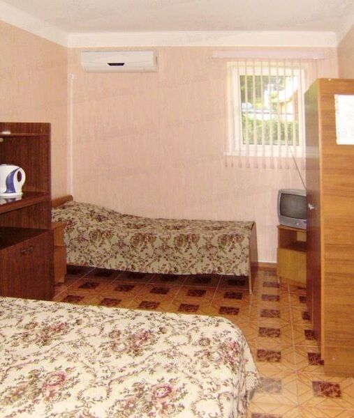 В номере: одна двуспальная и две односпальные кровати, москитная сетка, сплит-система, шкаф/гардероб, телевизор, чайник, холодильник, душ, туалет.