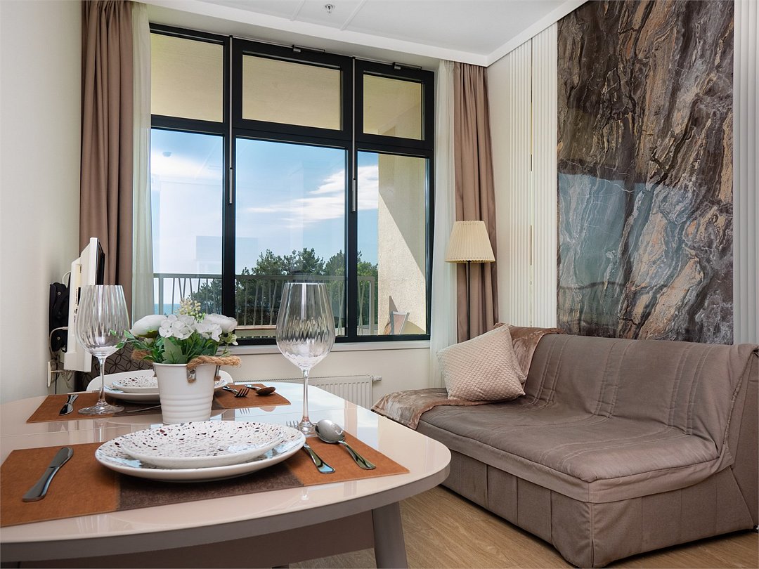 Апартаменты 2-местный 2-комнатный с одной спальней,вид на море с 3-5 этаж