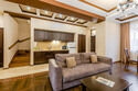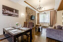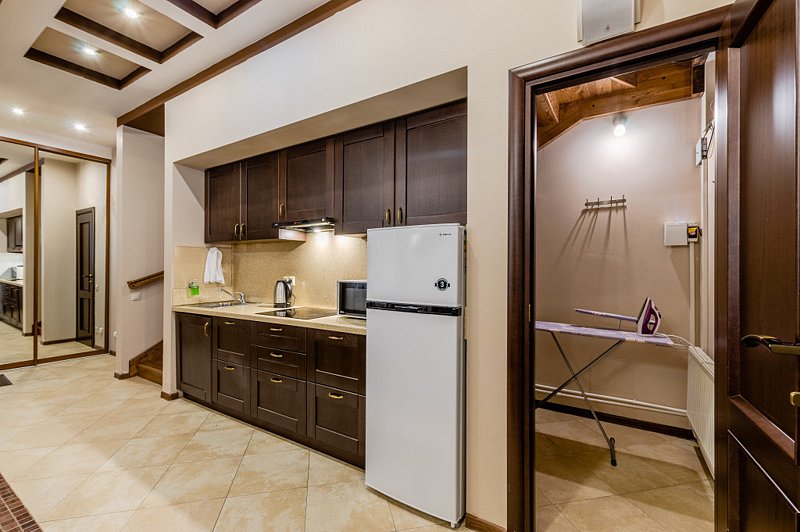 - кухня, оборудованная всем необходимым (вместительный холодильник, варочная панель, микроволновая печь, капсульная кофе машина, электрический чайник, посуда для приготовления и приема пищи, приборы);