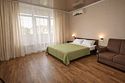 Четырехместный номер "Комфорт" со всем необходимым для комфортного проживания: душ и туалет, кондиционер, телевизор, холодильник. Мебель: Двухспальная кровать, два раздельных спальных места или диван-кровать, комод, шкаф, прикроватные тумбы, зеркало, стул и стулья.Услуги и удобства