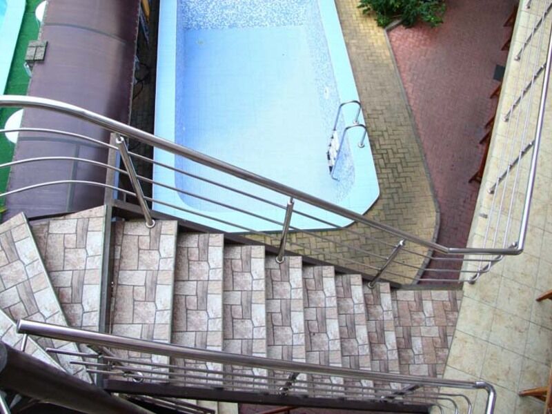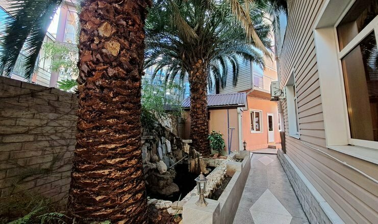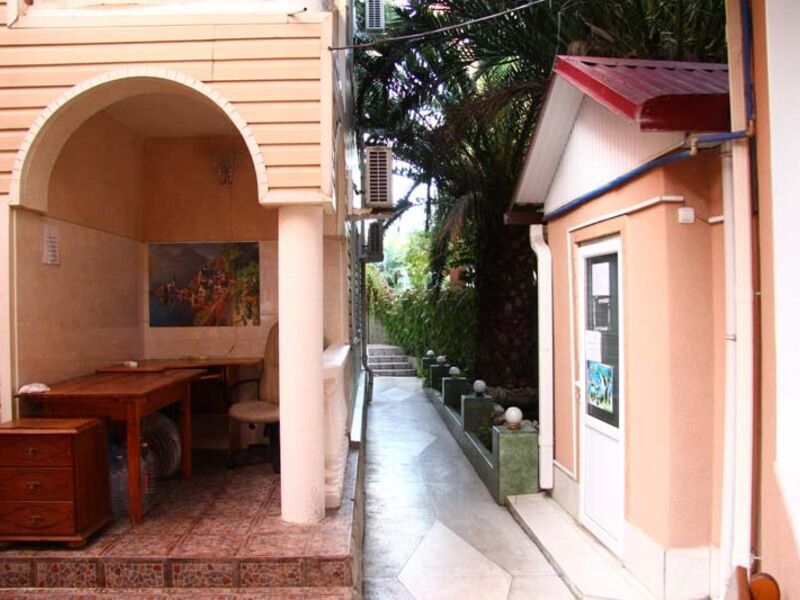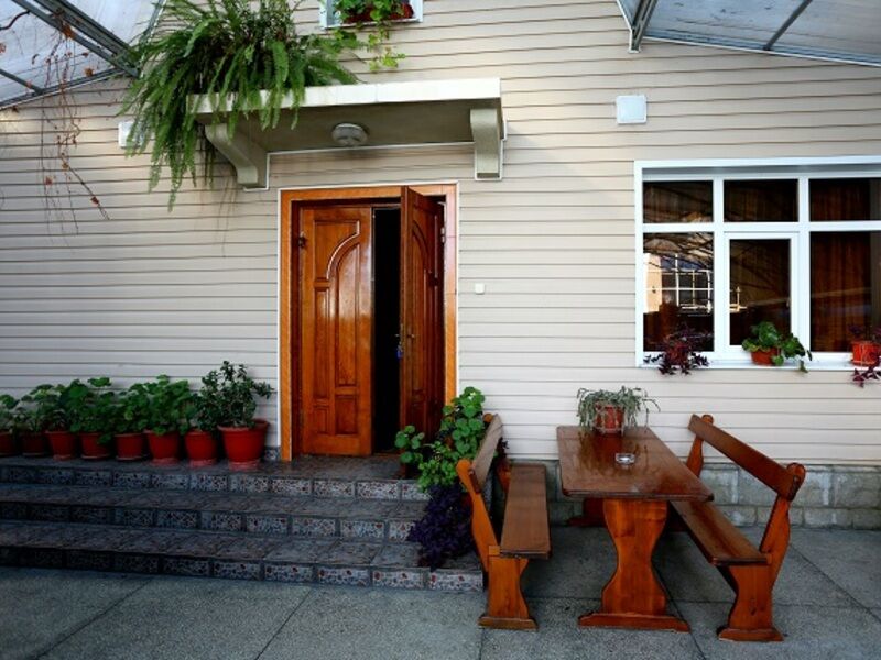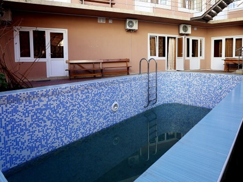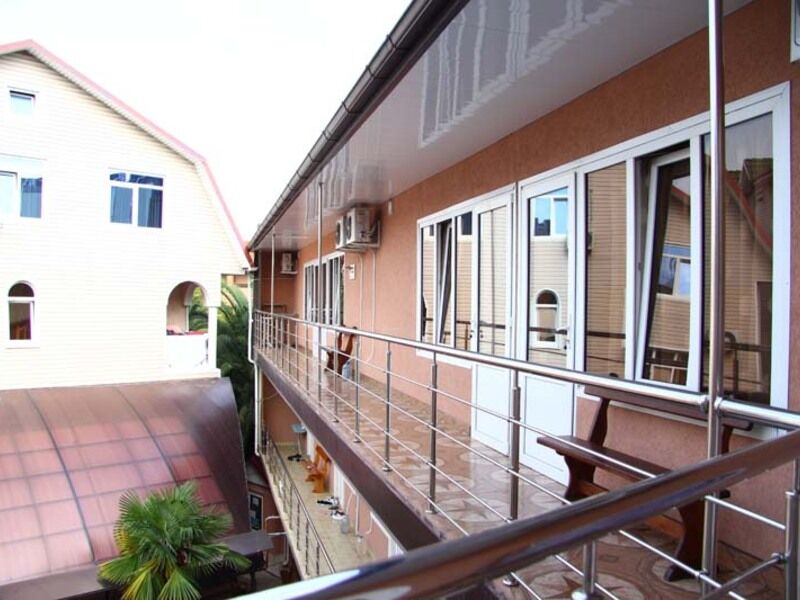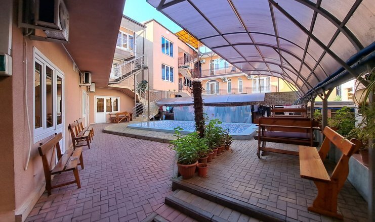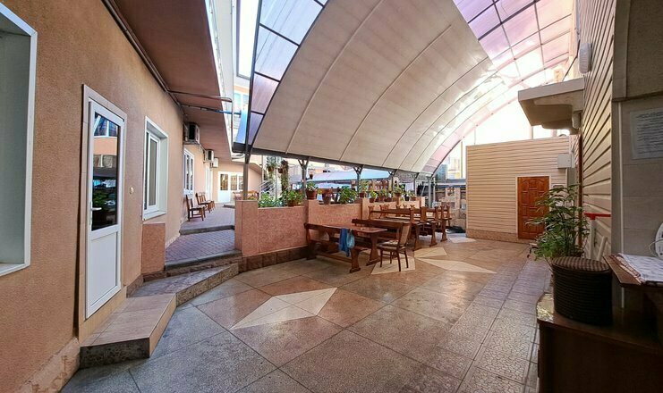 Территория гостевого дома состоит из 2-х корпусов: 3-х этажного коттеджа (корпус 2) и 4-х этажного основного дома (корпус 1). Столовая располагается на первом этаже здания коттеджа. На закрытой территории гостевого дома также есть большой внутренний двор, мангальная зона и открытый глубокий бассейн.