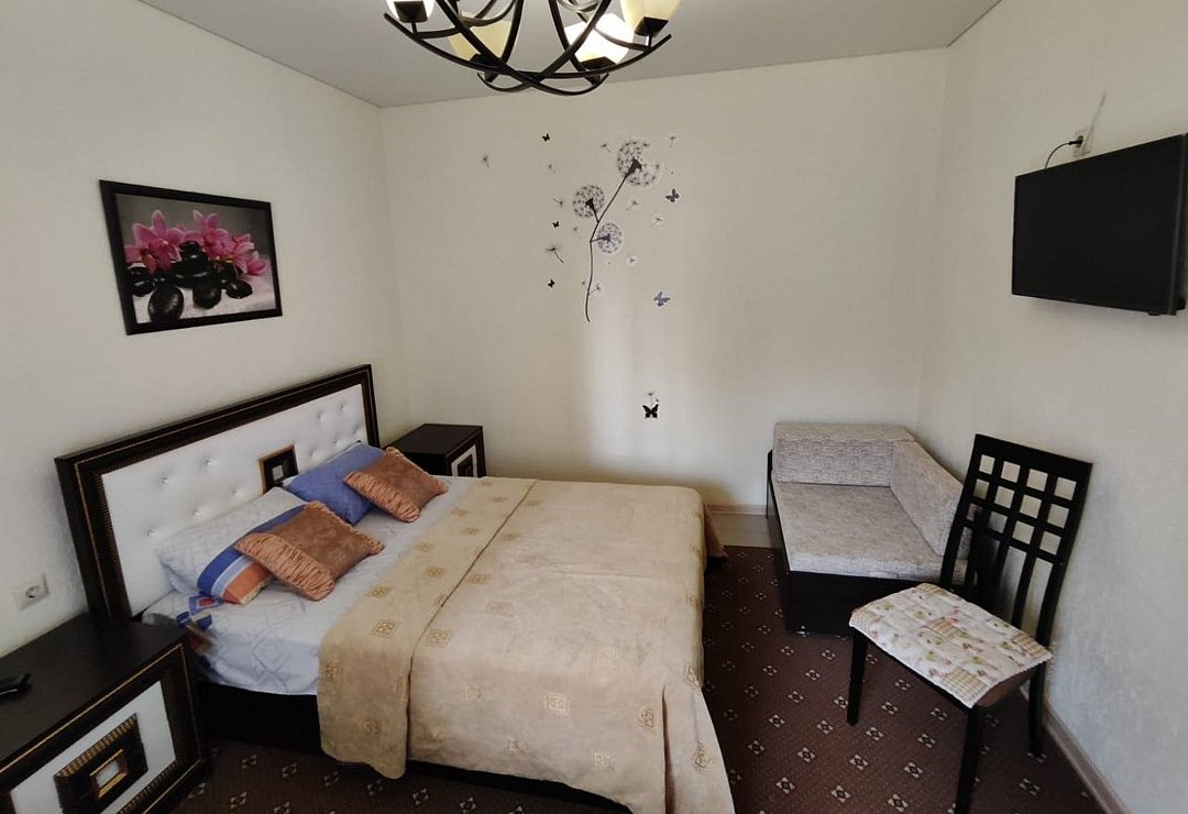 осн. места: двуспальная кровать, двуспальный диван, тв, х, к, с/у.