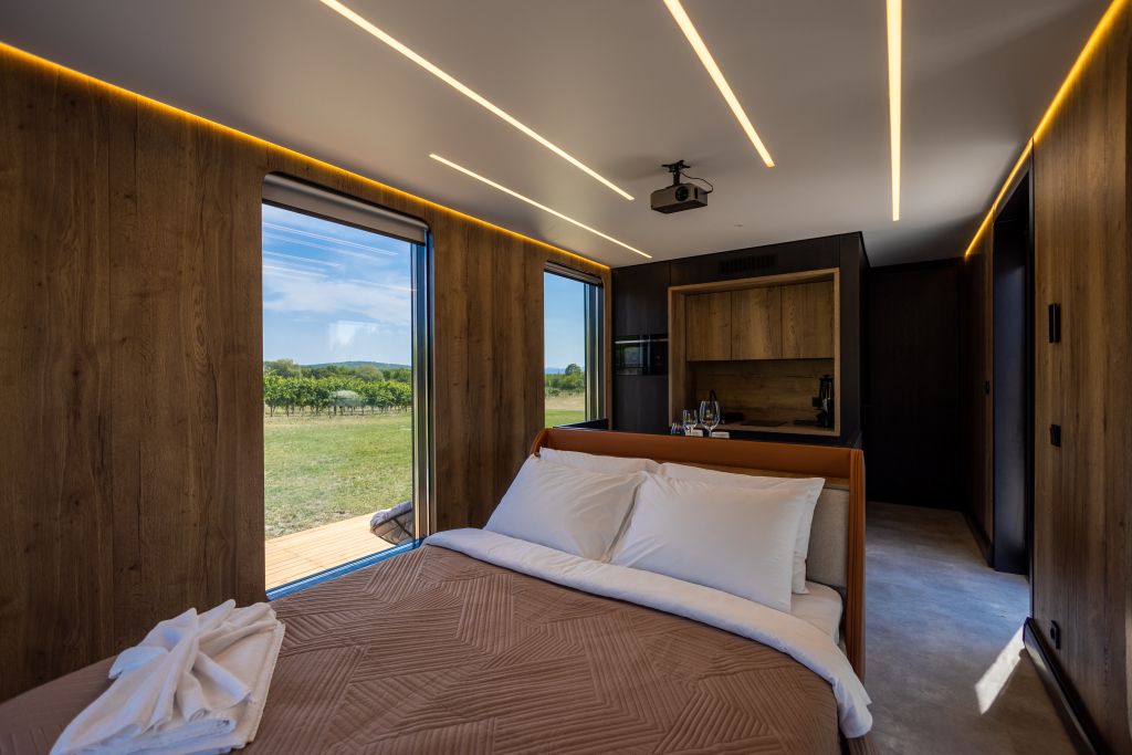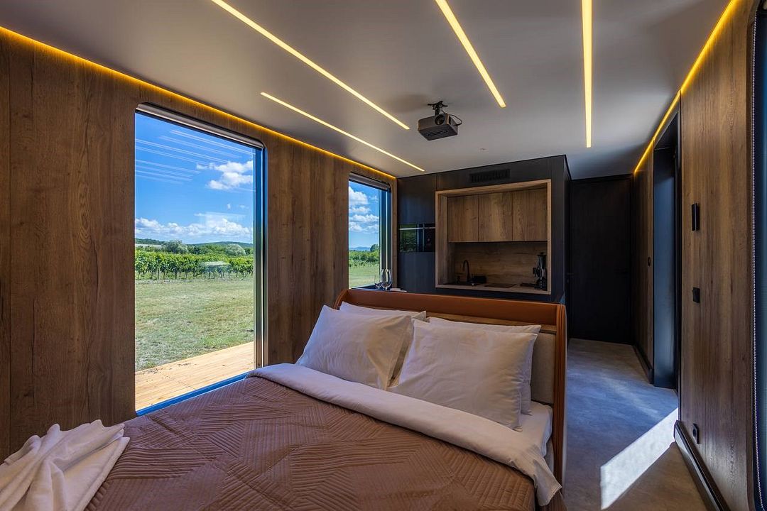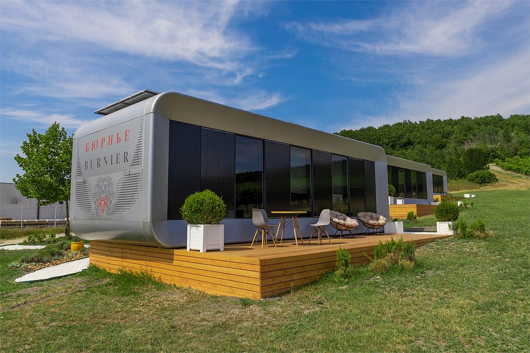 Модульные экодома полностью согласуются с философией «Бюрнье» по органическому виноградарству и бережному отношению к природе: ✓ на 100% обеспечивают себя электричеством за счет солнечных батарей ✓ оборудованы накопительными баками по сбору и фильтрации дождевой воды, встроенной станцией очистки сточных вод ✓ оборудованы теплым плинтусом, системами кондиционирования, охраны и «умный дом» ✓ оснащены кухонным гарнитуром, гардеробом, кроватью, тропическим душем, шторами «блэкаут», холодильником, СВЧ-печью, плитой, бойлером, проектором и высокоскоростным интернетом (Wi-Fi)Услуги и удобства