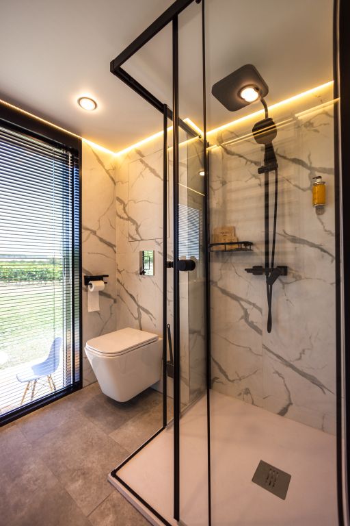 В глэмпинге на территории расположены автономные дома, которые обеспечивают себя электричеством за счёт солнечных батарей. Дома оборудованы накопительными баками по сбору и фильтрации дождевой воды, оборудованы встроенной станцией очистки сточных вод. Экодома площадью 20 кв. м. имеют спальную зону, кухню, санузел, отделку экологичными материалами уровня «премиум», шторы блэкаут, систему кондиционирования и тёплый плинтус, блок автоматики с системой «умный дом», охранную систему, круглосуточную охраняемую территорию.