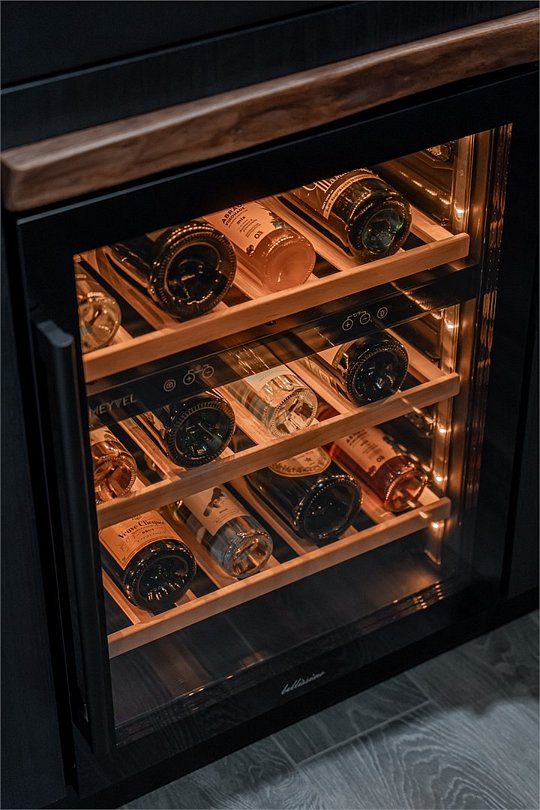 В кухонной зоне есть чай, сахар, посуда, бокалы и столовые приборы. В кофемашину SMEG уже засыпаны свежие зерна премиальной арабики.А так же представлена коллекция шампанских вин, это выставочные экспонаты, не для употребления!