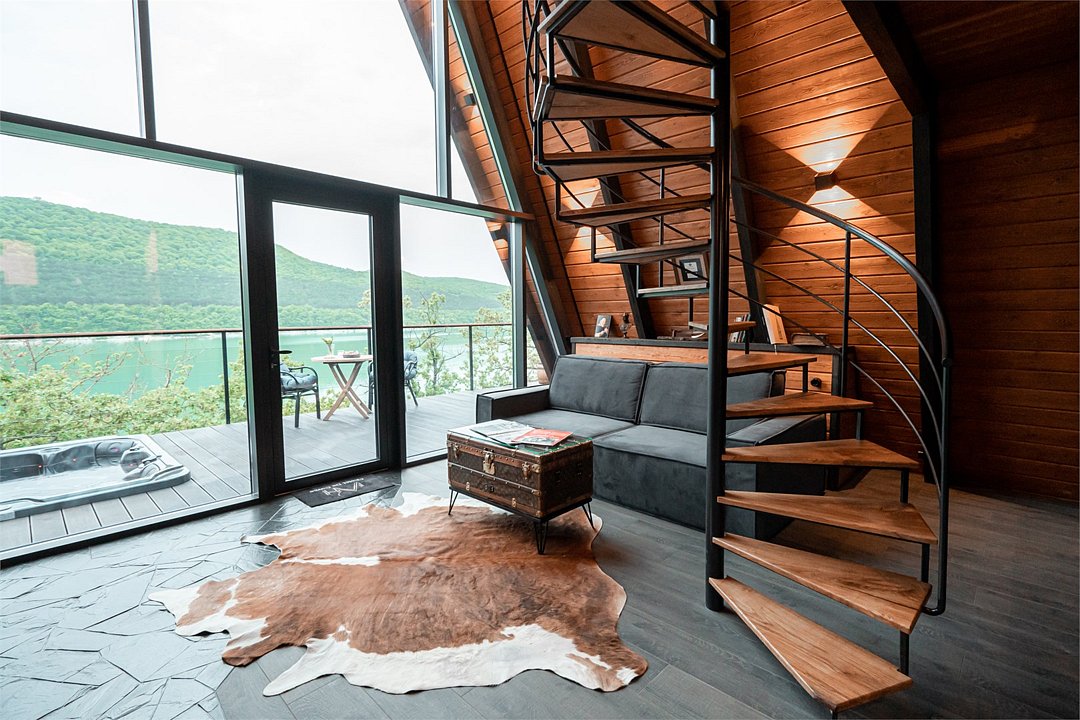 Уютное шале с двусветным видовым окном, камином и джакузи с теплой водой на приватной террасе, с которой открывается изумительный вид на озеро Абрау, горы и лес. Тихое окружение, свежий воздух, зададут настроение вашему отдыху. Наш дом расположен в историческом центре п. Абрау-Дюрсо, в 5 минутах ходьбы от центральной набережной с зоной развлечений и ресторанами. В шале собраны уникальные коллекционные вещи, связанные с историей вина.