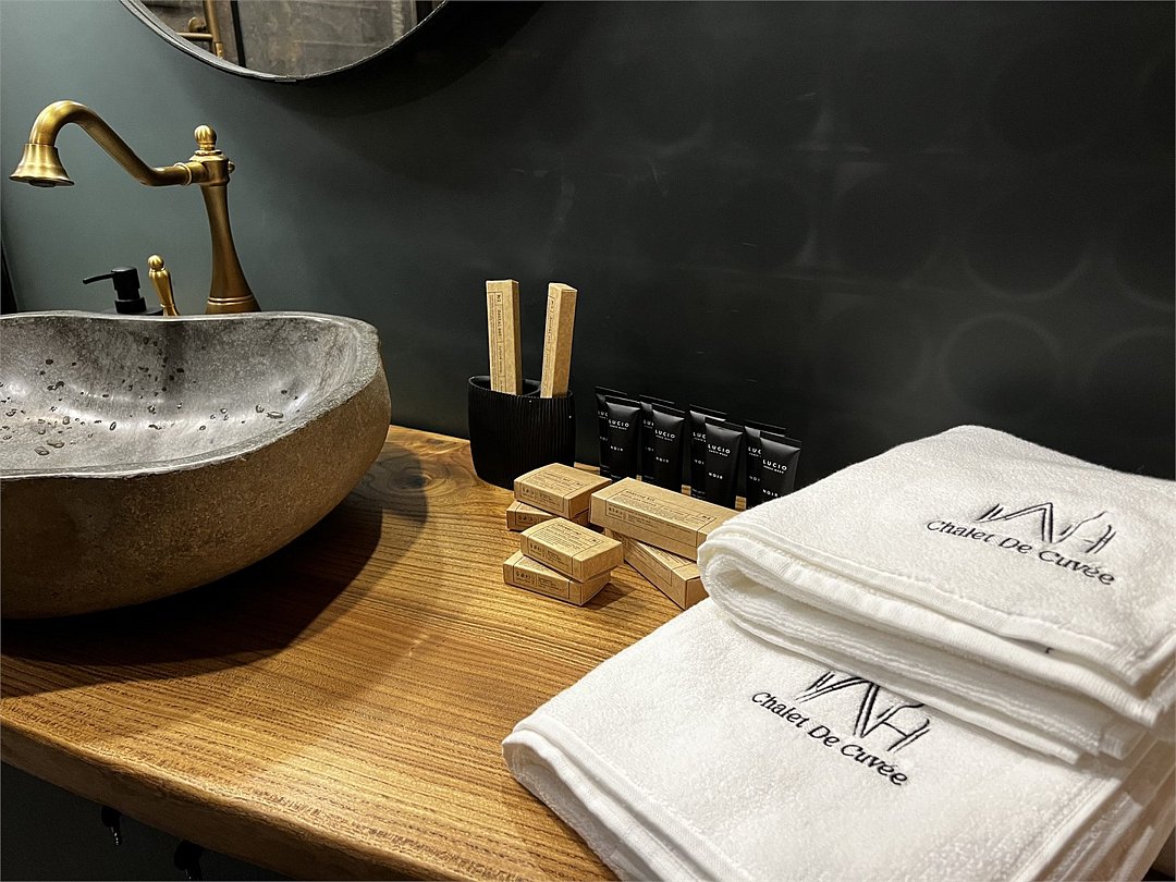 Для каждого гостя мы наполняем джакузи свежей водой и подогреваем до комфортной температуры. В холодильнике Вас ждёт охлаждённое шампанское и комплимент от Chalet De Cuvee.