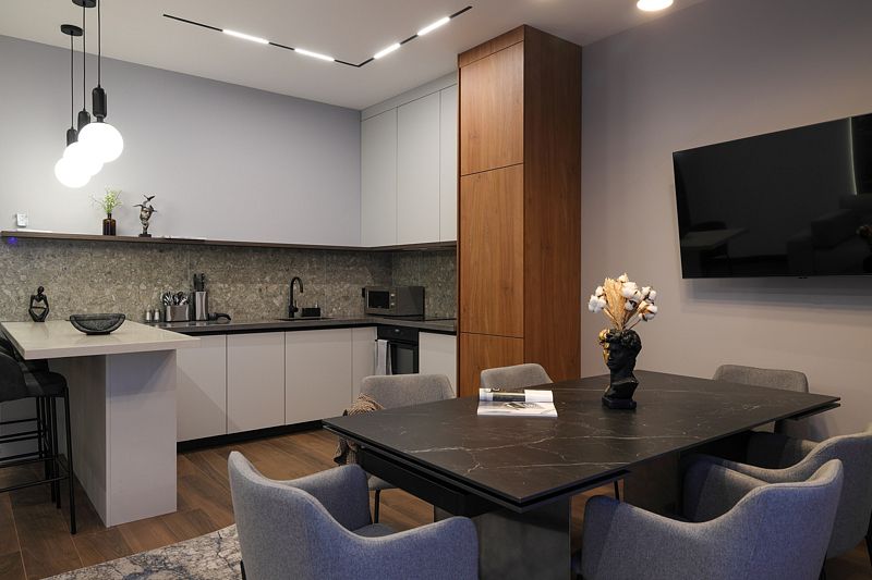 Двухэтажные резиденции имеют индивидуальное парковочное место, во внутреннем дворике есть терраса и мангальная зона. Расстояние до железнодорожного вокзала составляет всего 1,2 км, а до аэропорта «Сочи» - 37,2 км.