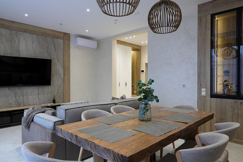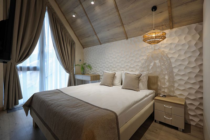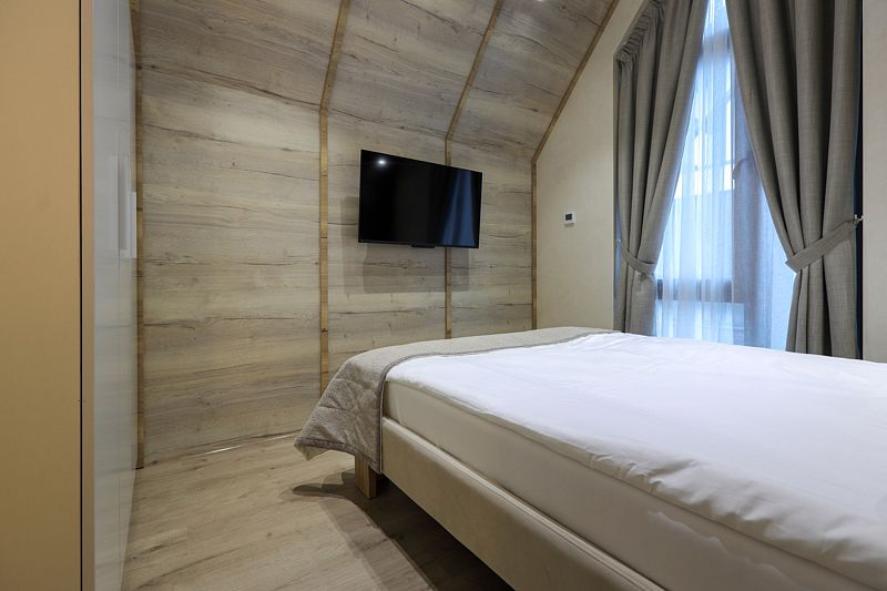 Резиденции имеют 2 этажа. На втором этаже располагаются спальные места мансардного типа, шкаф для хранения вещей, телевизор, кондиционер. На первом этаже находится гардероб, принадлежности для глажки, сейф, стиральная машина, собственная ванная комната, санузел, диван.