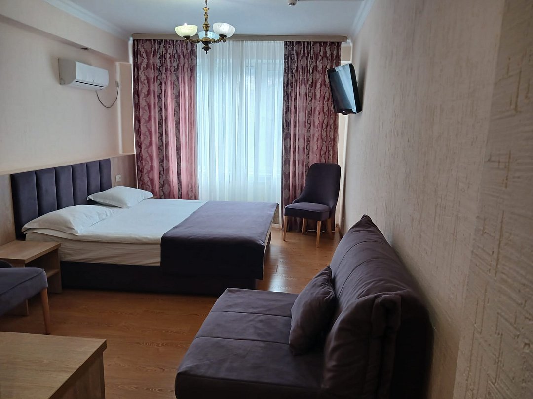Номера оборудованы сплит-системами, современными ТВ, холодильниками, вместительными шкафами для одежды. В отдельных номерах есть мягкая мебель, сейфы для ценных вещей и балконы.
