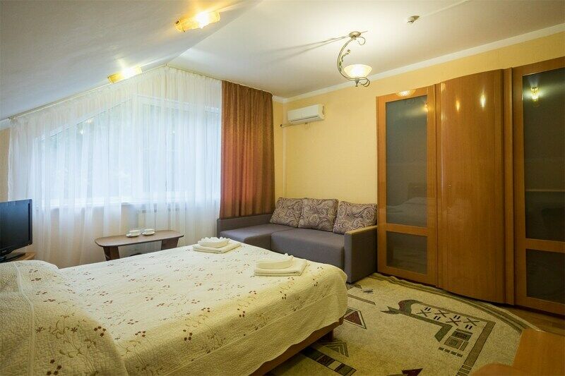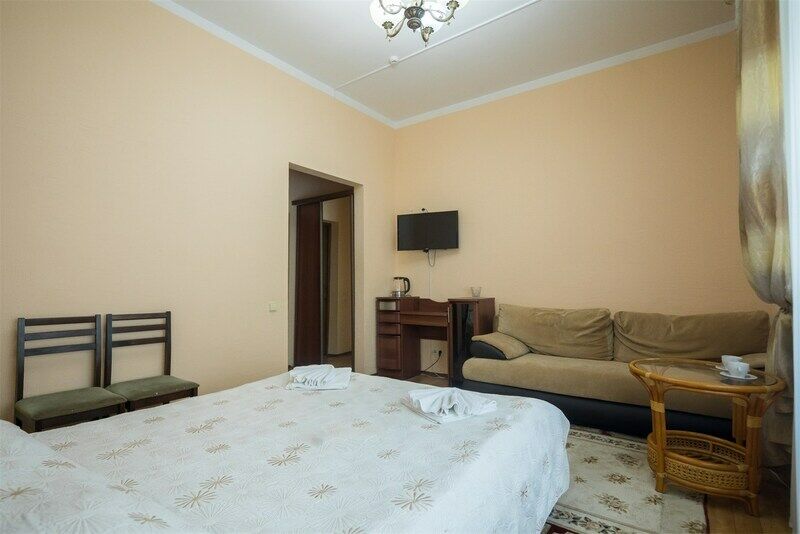 Комфортный номер с большой двуспальной кроватью и раскладным диваном.