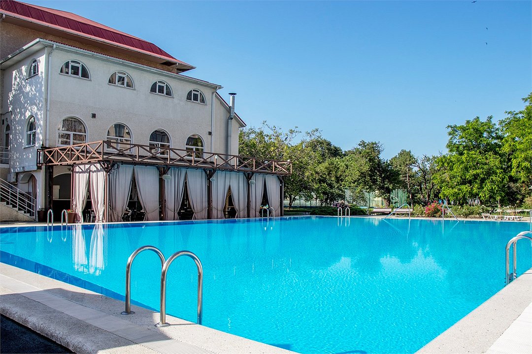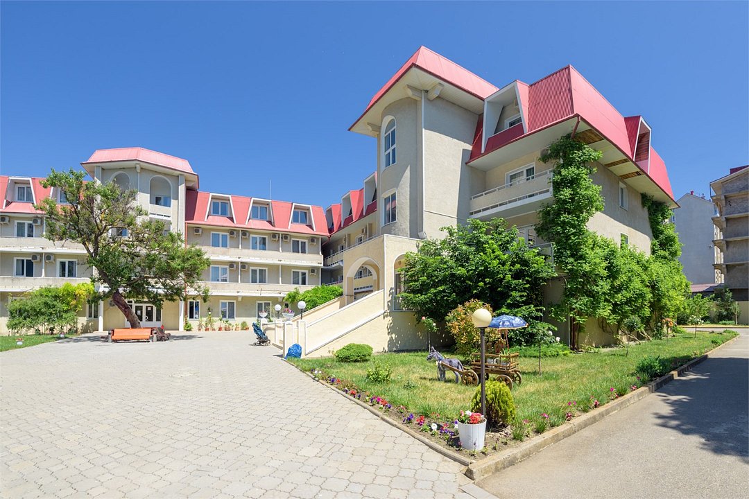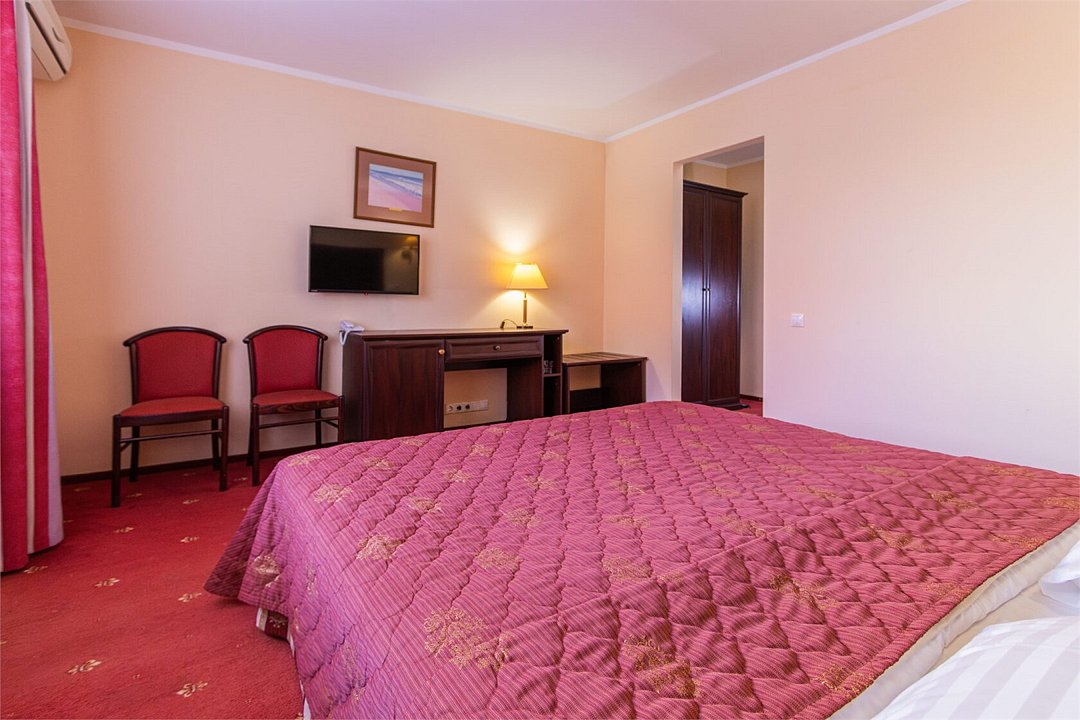 ДостоинстваПосетили мы этот пансионат с детьми в июле 2018. Понравилось абсолютно всё, номер был очень удобным, спальных мест нам хватило, у двух комнат был балкон. Не было жарко, так как был кондиционер, номер был отремонтированный, но ковролин не первый свежести. Номер был чистым, на телевизоре работают шесть каналов, имелся небольшой холодильник. На первом этаже был кулер. Уборку проводили ежедневно, регулярно меняли постельное белье и полотенца. Понравилось питание, оно было организовано по системе шведский стол, выбор есть. Было два бассейна, для детей и взрослых, вода в них была тёплая. Имелся бар, анимация для детей, различные развлечения для детей.