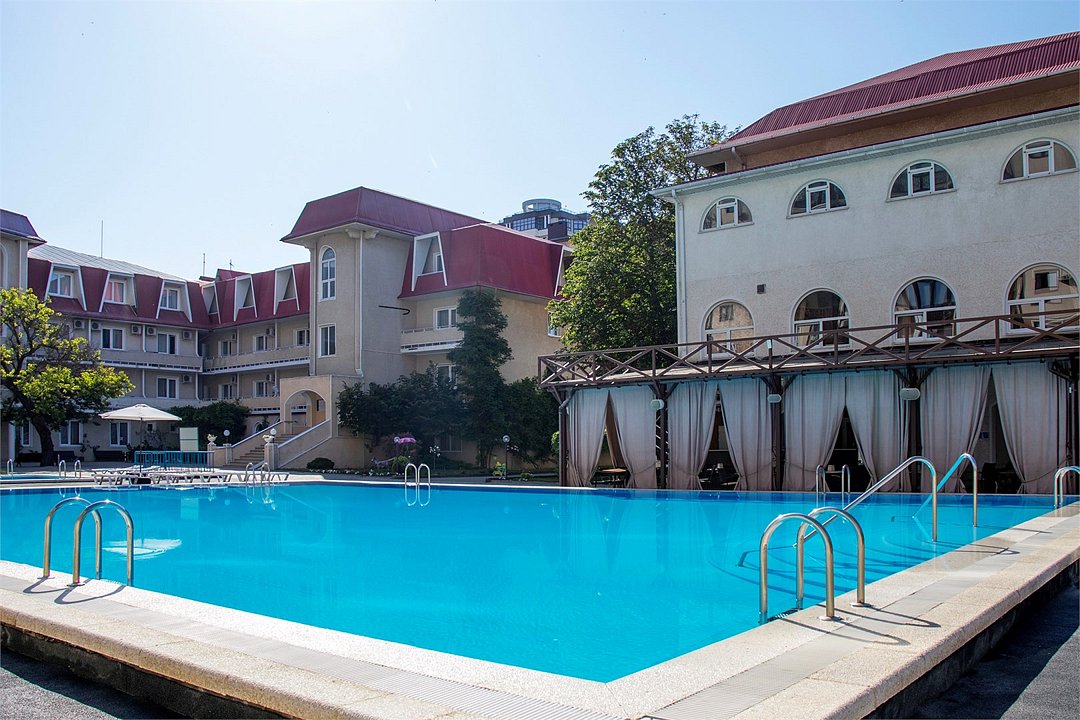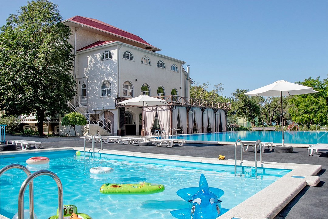 ДостоинстваПансионат полностью соответствует своему описанию. Имеются два бассейна, один взрослый а второй детский, имеются зонтики и лежаки, игровая площадка, на которой могут поиграть дети, площадка для волейбола и футбола, есть даже библиотека и бильярдные столы. Питание понравилось, оно рассчитывается по калориям. Территория у данного заведения небольшая, но она чистая и ухоженная. Понравился персонал, который относился доброжелательно, также понравилась анимация. Номера были очень уютными, до моря можно дойти за 10 минут. Отдых меня полностью устроил.