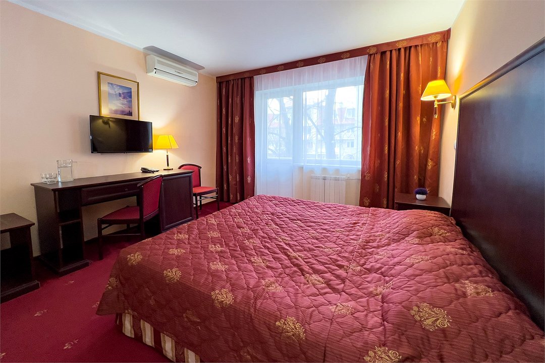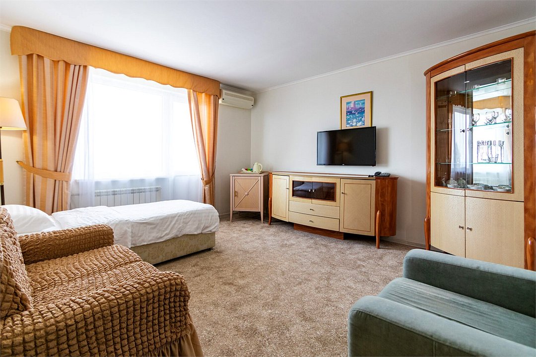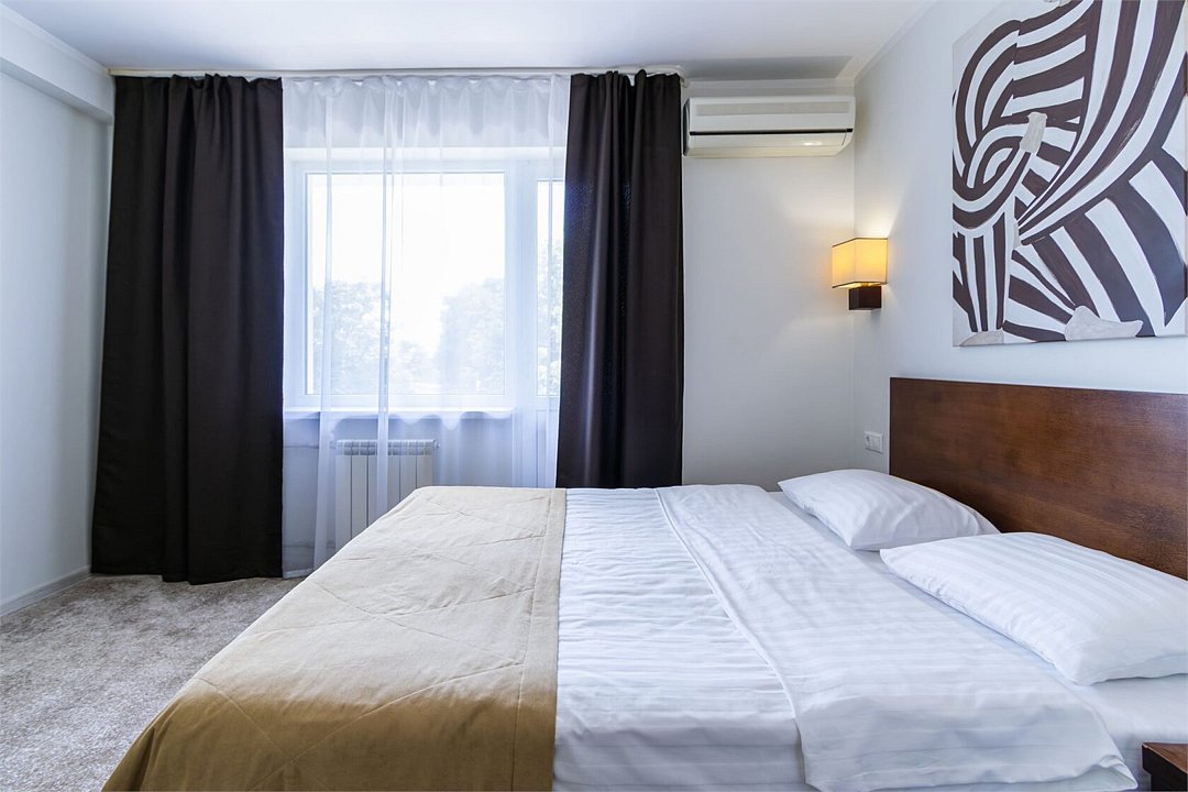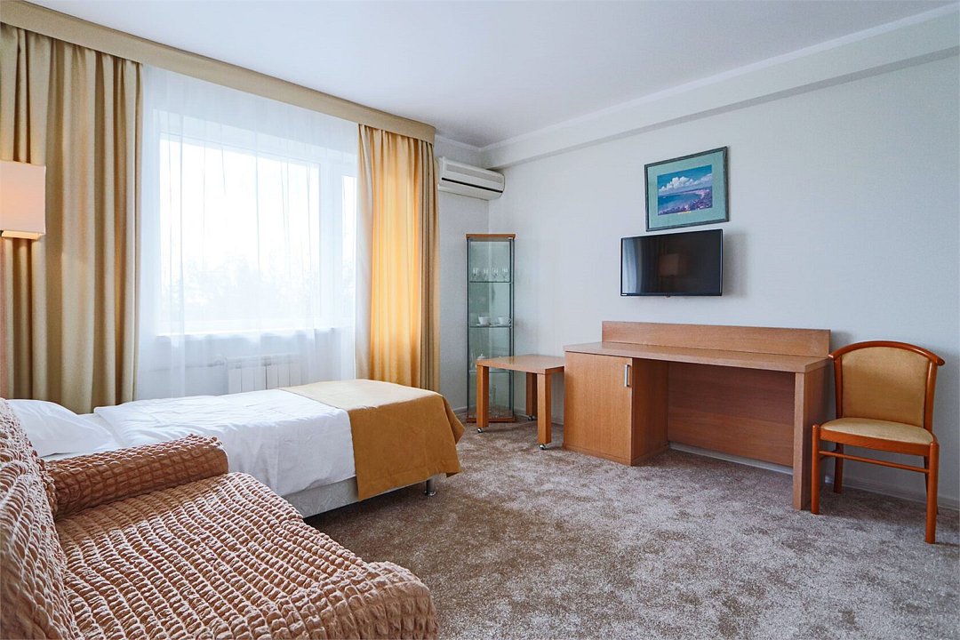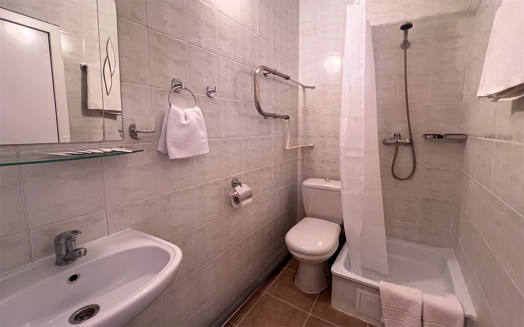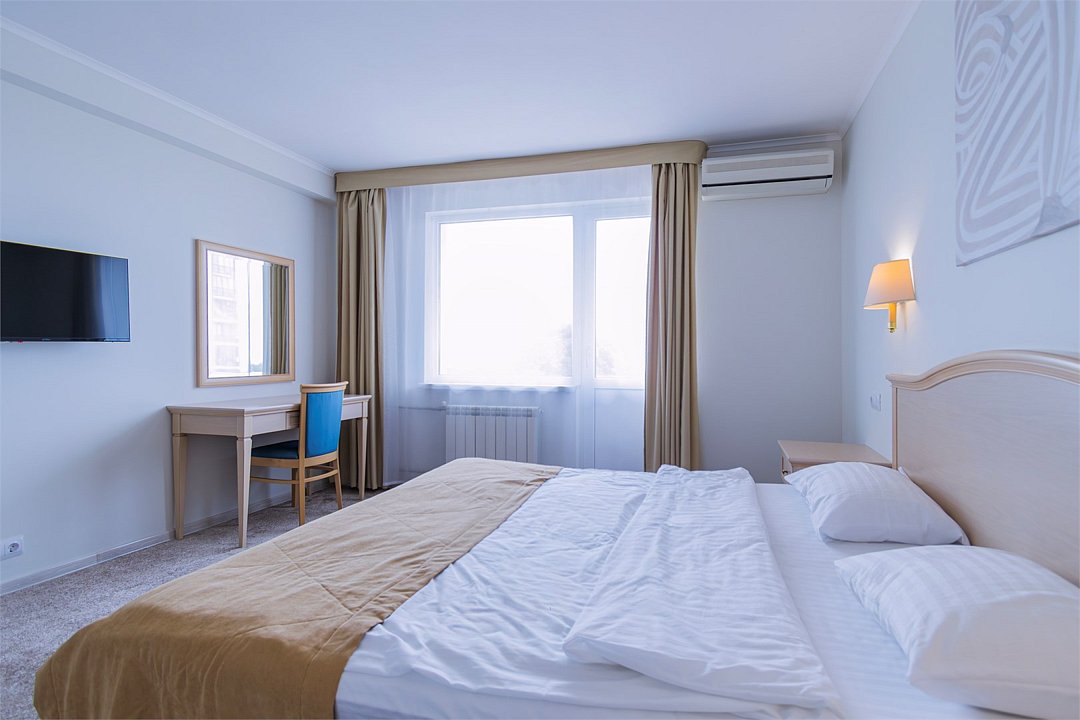 Однокомнатный номер площадью 25 м2 с двумя односпальными кроватями. Санузел номера оснащен душем. В номере: кондиционер, LED телевизор, мини-холодильник, письменный стол и стулья, шкаф для одежды, тумба, багажная тумба, зеркало, телефон, фен. Идеально подходит бизнес-туристам и друзьям.Услуги и удобства