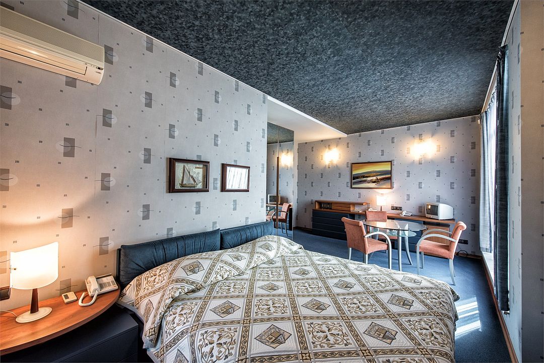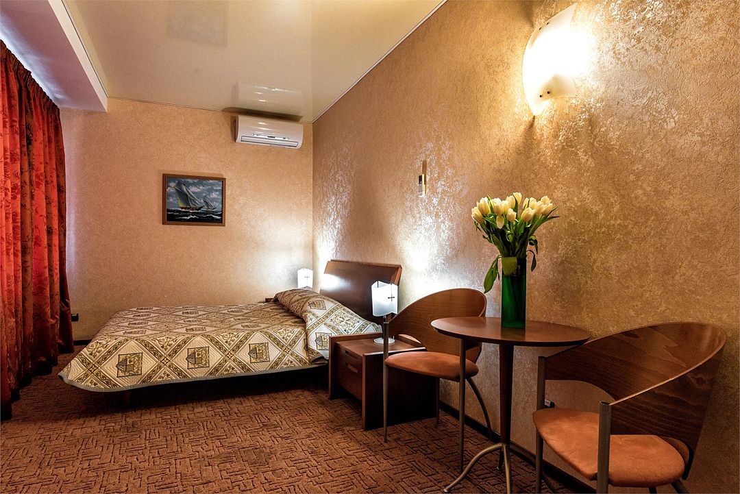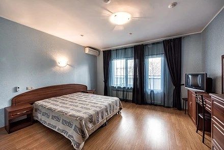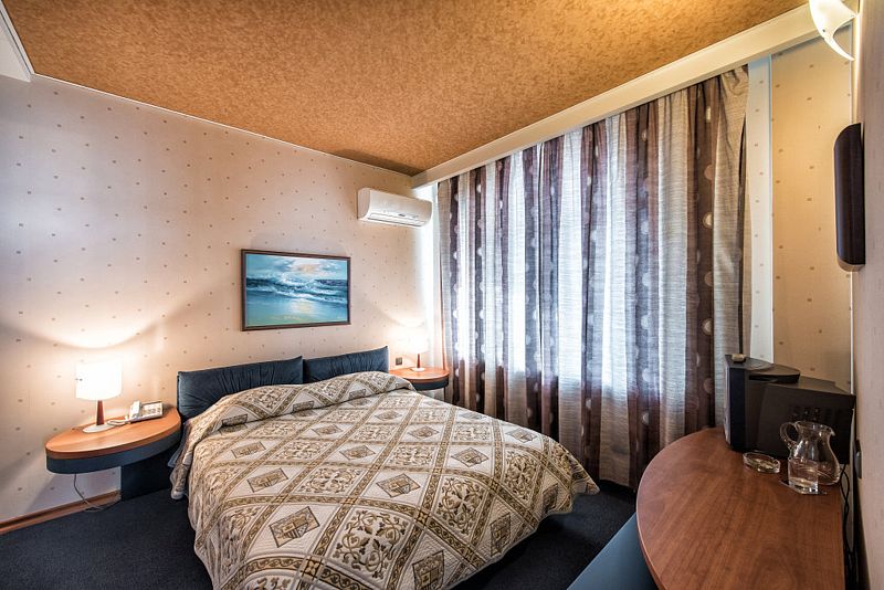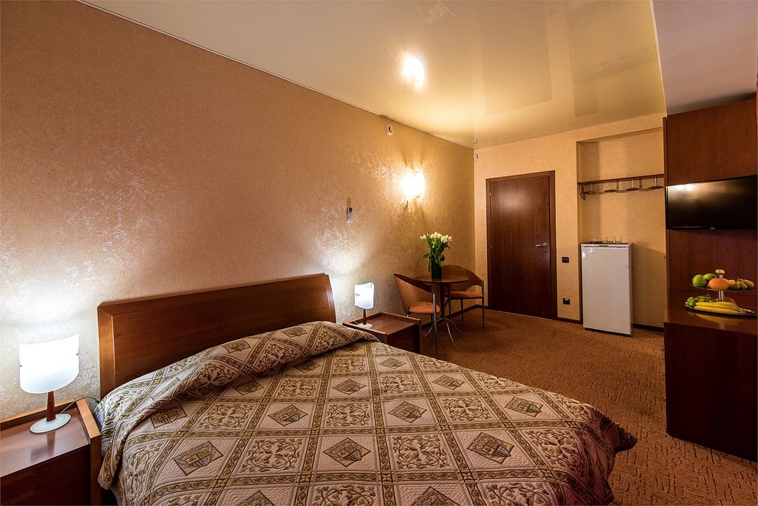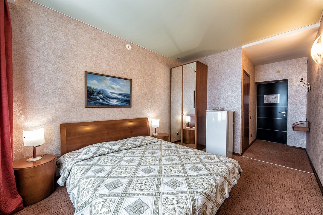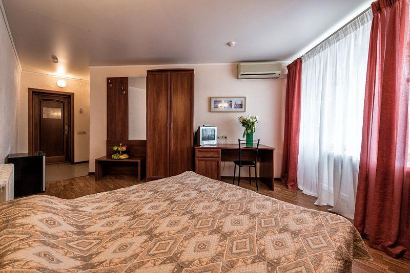 Классический двухместный номер категории "Стандарт". В Каждом номере двуспальная кровать, сплитсистема, холодильник, ТВ, санузел, душ.Услуги и удобства