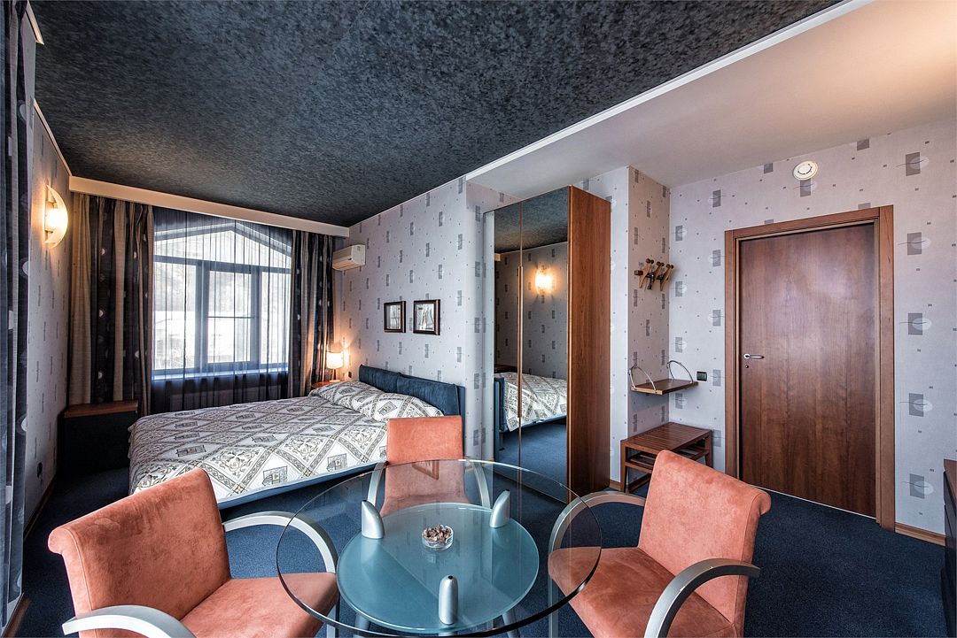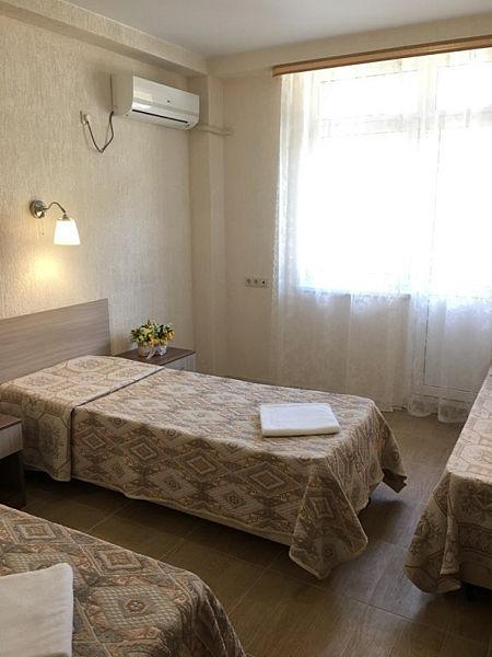 Трехместный двухкомнатный номер.В каждой комнате выход на балкон. Из удобств представлены сплитсистема, ТВ, санузел, душ.Услуги и удобства