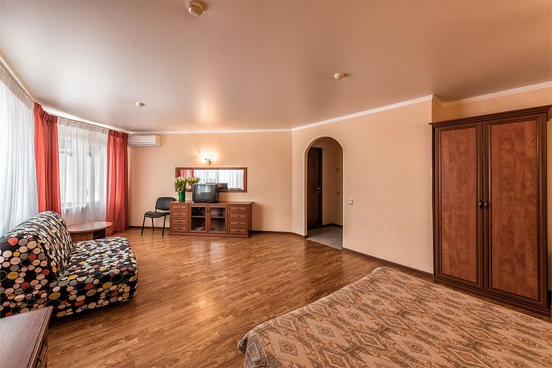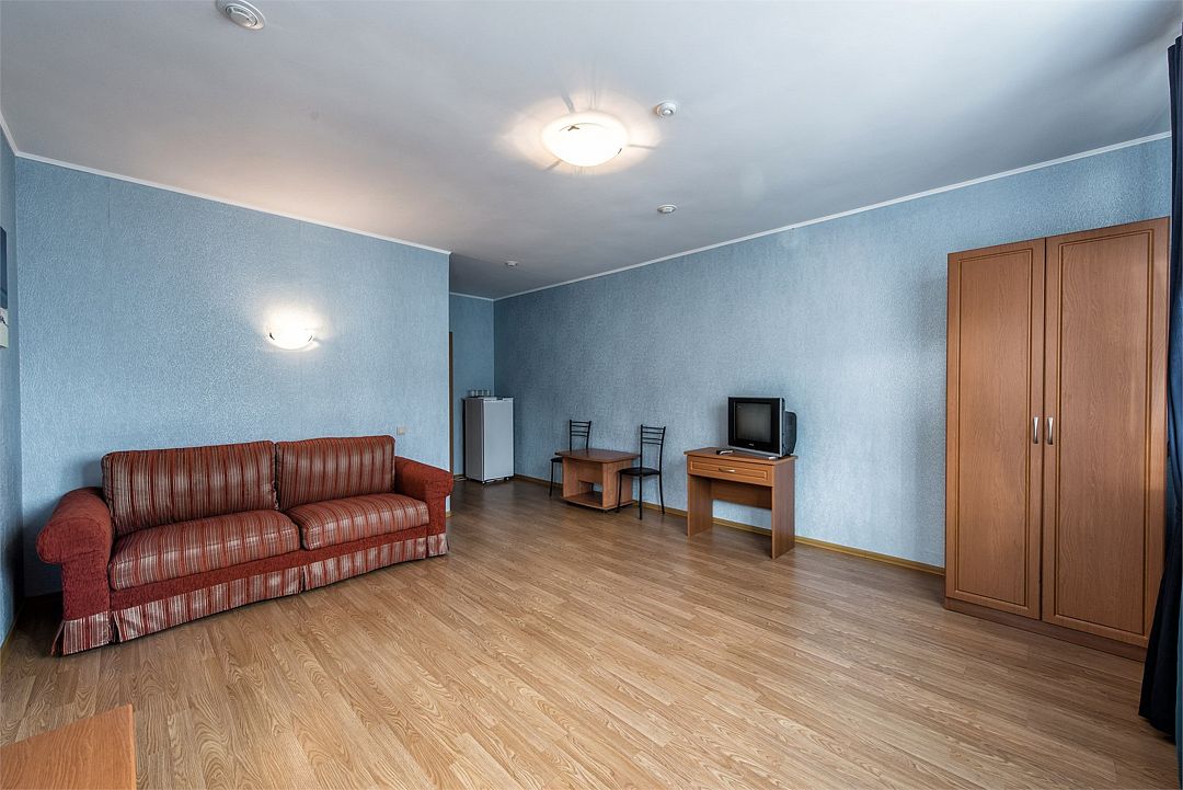 Классический трехместный номер категории "Стандарт". В Каждом номере двуспальная кровать, диван-кровать, сплитсистема, холодильник, ТВ, санузел, душ.Услуги и удобства