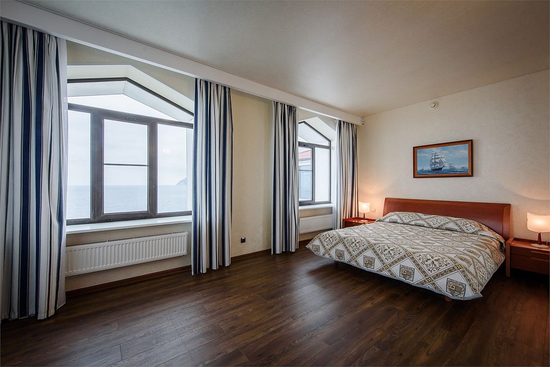 Комфортабельные номера на 4 этаже главного корпуса. С номеров с видом на море открывается потрясающий вид на бухту Широкой балки. В каждом номере сплитсистема, ТВ, санузел, душ.Услуги и удобства