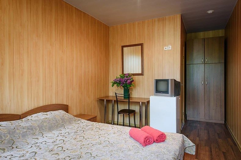 Четырехместный номер, расположенный в летнем домике, на территории базы отдыха.Рядом имеются беседки для отдыха. Из удобств в каждом номере представлены сплитсистема, ТВ, санузел, душ.Услуги и удобства