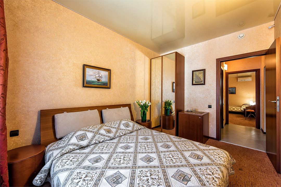 Улучшенный двухместный номер с видом на море, расположен на 4 этаже основного корпуса. В каждом номере ТВ, сплитсистема, санузел, душ.Услуги и удобства
