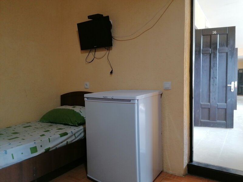 Уютный двор украшают цветы и зелёные растения. На территории дома имеется оборудованная кухня, также есть недорогая столовая, кто не хочет готовить, зона отдыха, мангал для приготовления шашлыка. Дополнительные душевые.