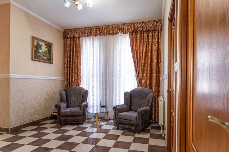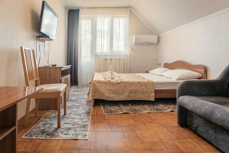 С/у с душем, 2 односп. кровати и кресло-кровать, рабочее место, wi-fi, ТВ, кондиционер, мини-холодильник, балкон.