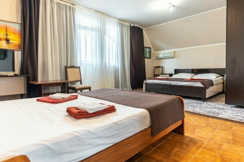 С/у с душем, 2 двусп. кровати, рабочее место, wi-fi, ТВ, кондиционер, мини-холодильник, балкон.