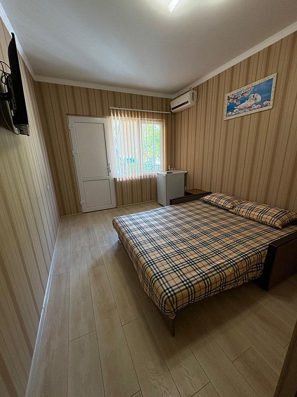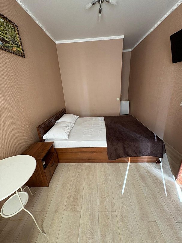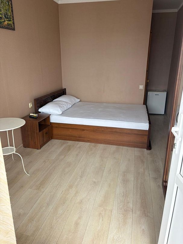 Номер оснащен удобной двуспальной кроватью прикроватными тумбочками, журнальным столиком, сплит системой, холодильником, жк телевизором, бельевым шкафом.Wi-Fi бесплатно на всей территории.
