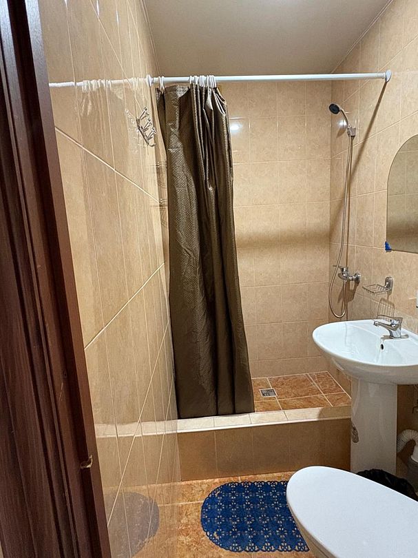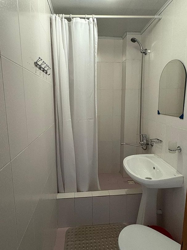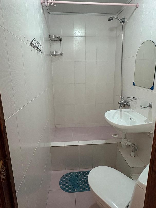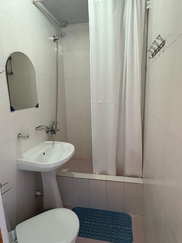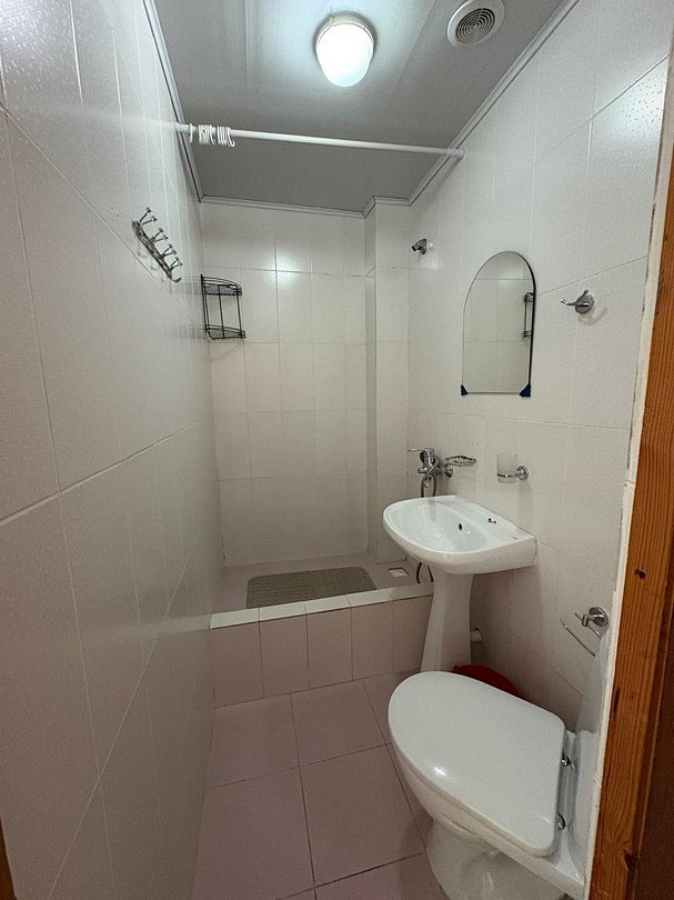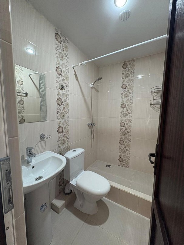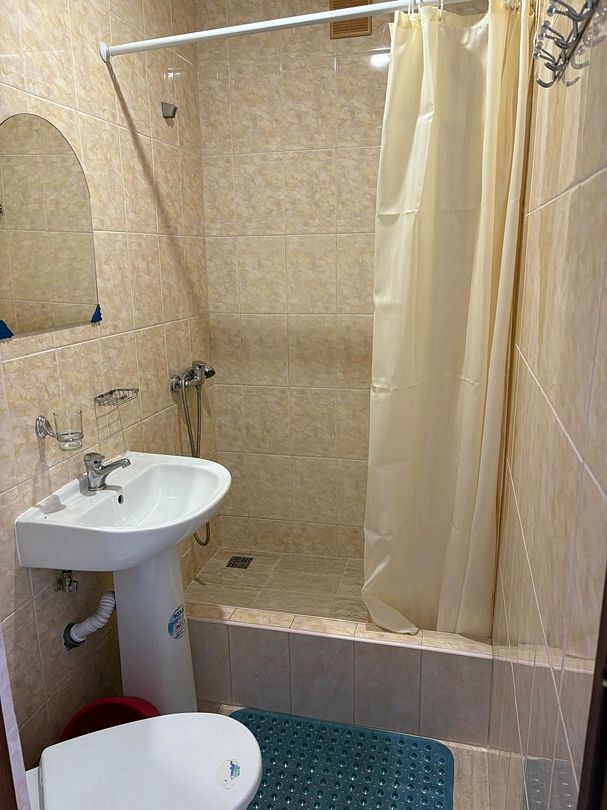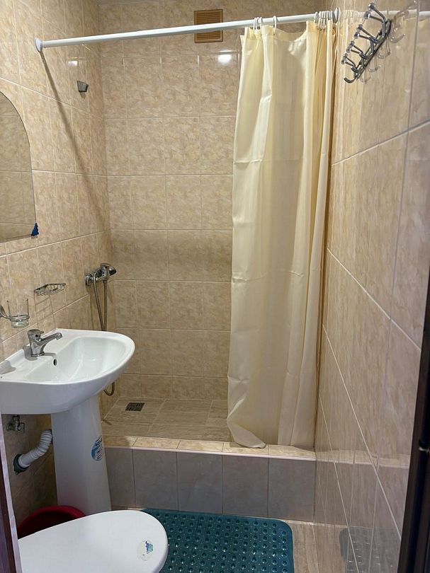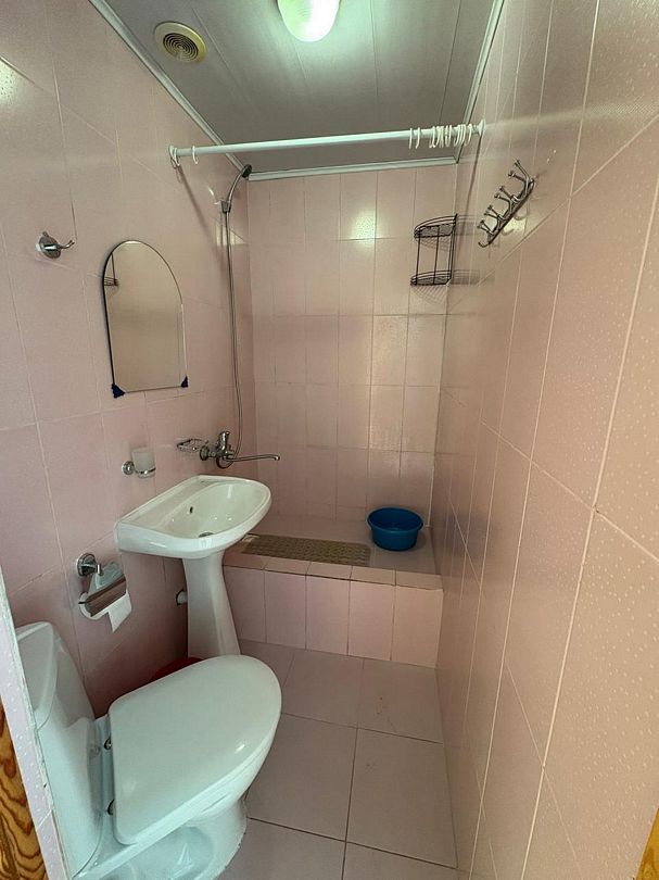 Индивидуальная ванная комната: душ, раковина, туалет.