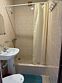 Санузел в номере: Душ, раковина, унитаз, зеркало.
