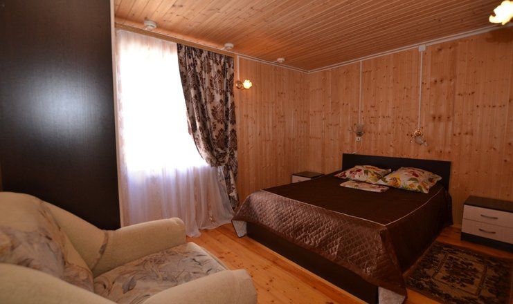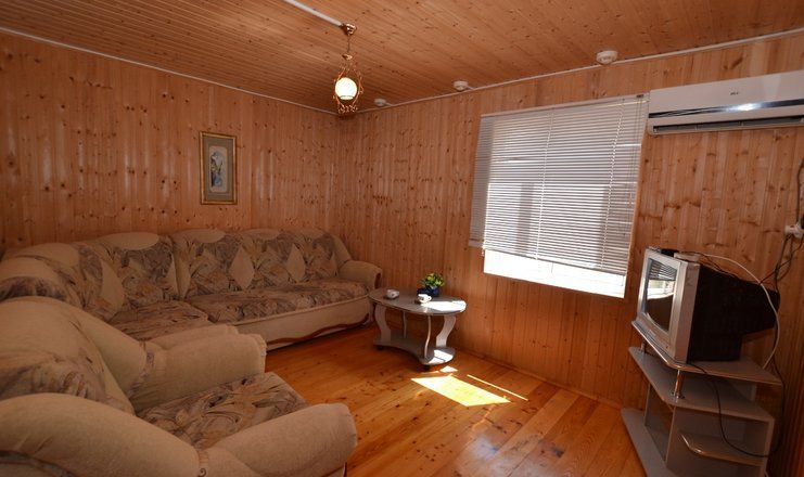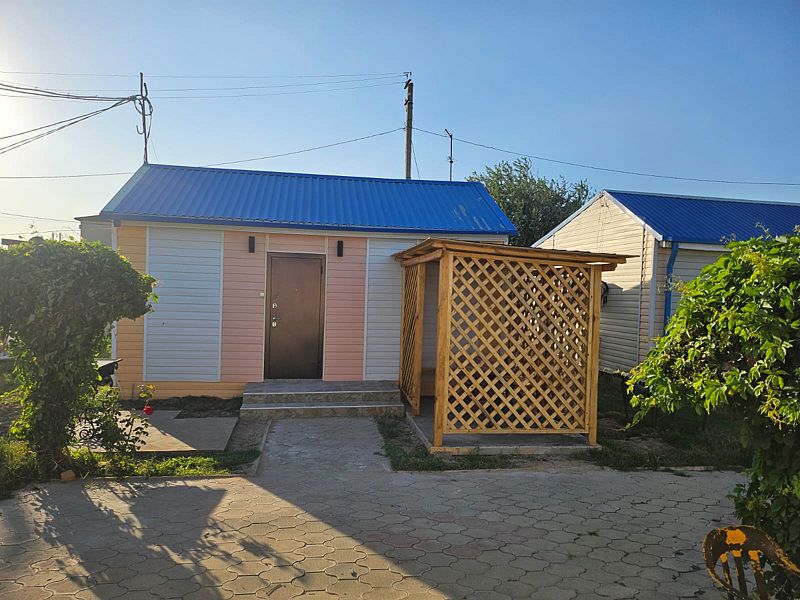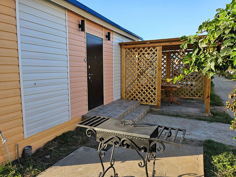 Однокомнатные домики располагаются на территории базы с видом на море и детскую площадку.