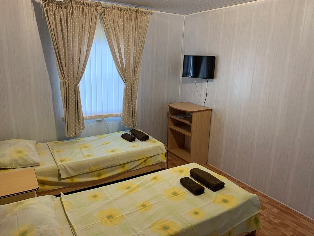 телевизор, Wi-Fi, холодильник, санузел, банные полотенца, гигиенические средства, две односпальные кровати, тумбы, стулья, шкаф для одежды, вешалки, письменный стол, багажная тумба, зеркало, минеральная вода, унитаз, раковина, отопление, душ, вид во двор, ламинат, стаканы, стул, сплит-система, цифровое тв, мини-холодильник, москитная сетка, гостиничная парфюмерияВ гостиничном номере