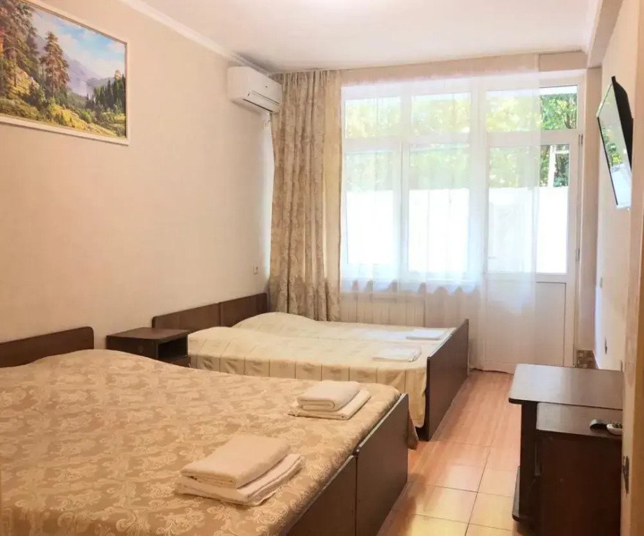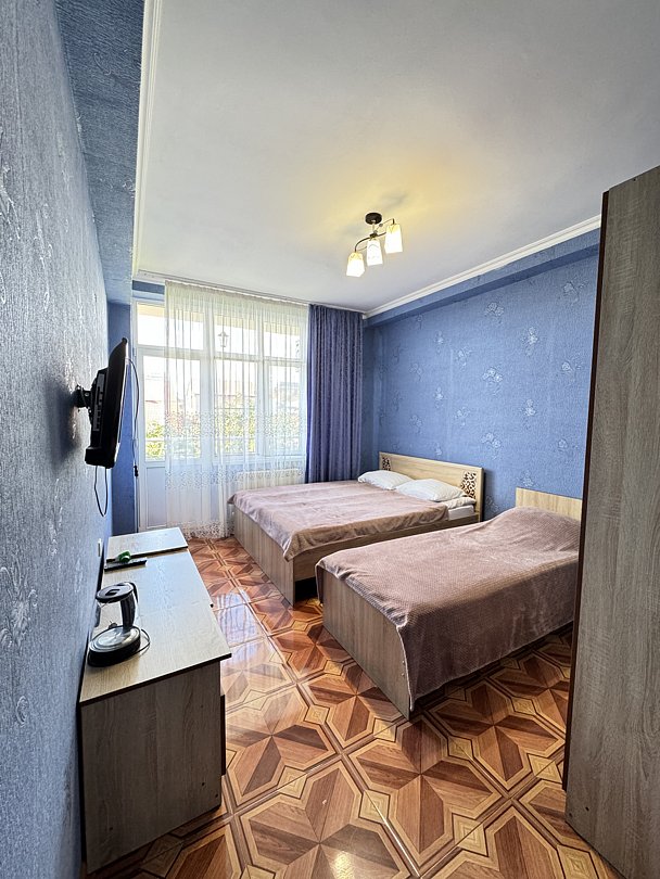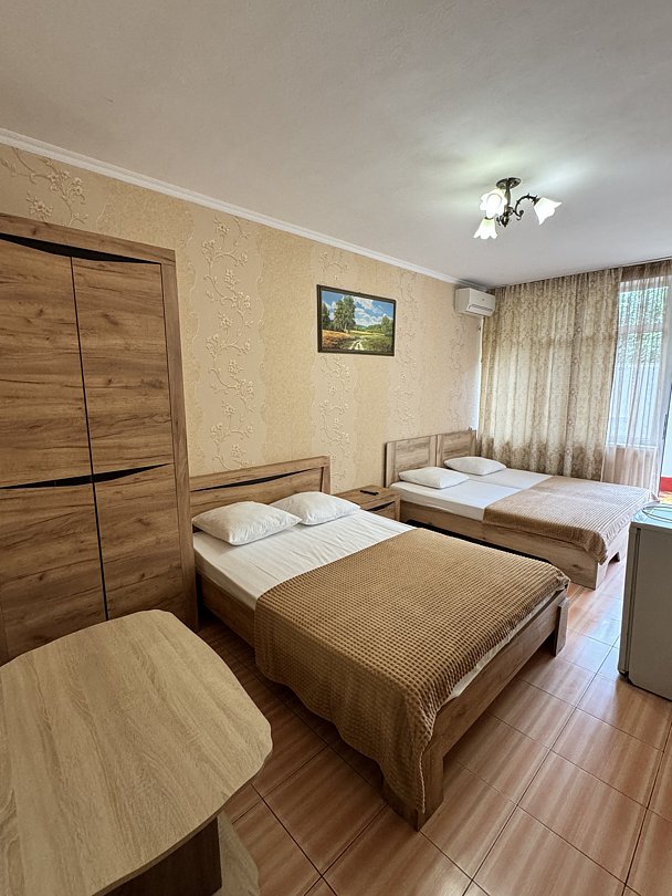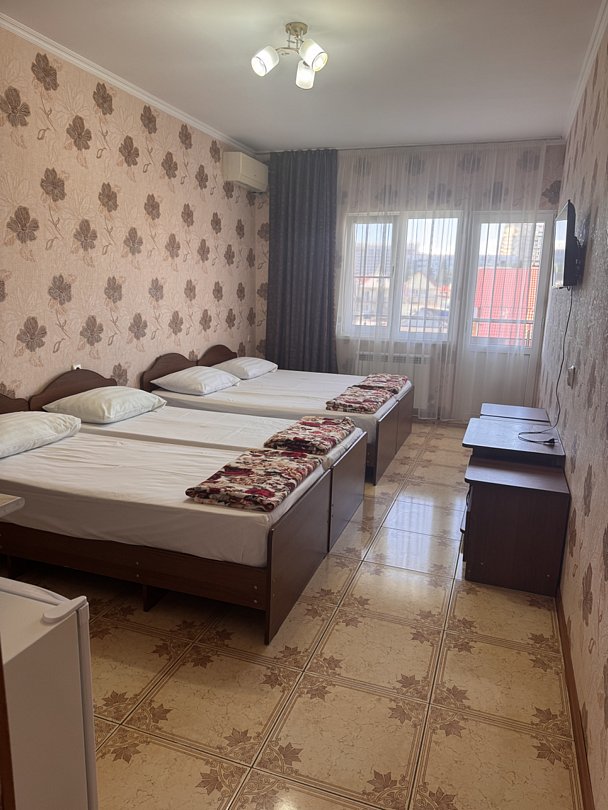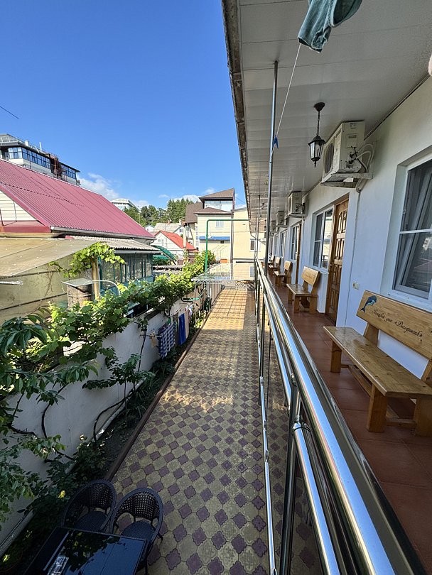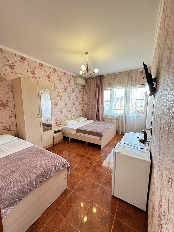 Комплекс, находящийся в тихом и зеленом частном секторе, включает в себя 2 корпуса — один двухэтажный, другой — четырехэтажный, оба без лифта. Гостей ожидают комфортабельные номера Стандарт. В каждом номере — собственный санузел, телевизор, кондиционер, мини-холодильник. На территории есть общая кухня, где гости могут приготовить или разогреть еду и сделать свой любимый горячий напиток. Гостям доступны услуги стирки и беспроводной интернет Wi-Fi.