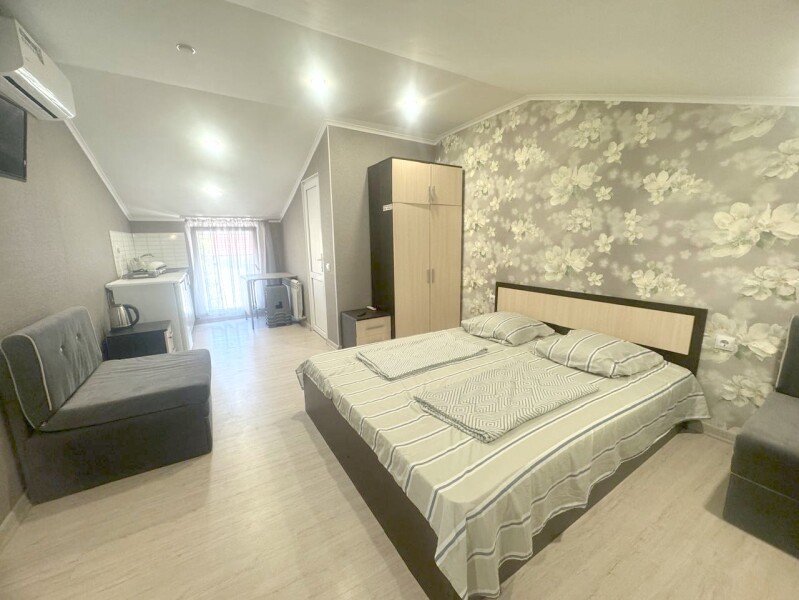 В гостевом доме созданы все условия для комфортного проживания, в номерах современная мебель, кондиционер, телевизор, индукционная плита, электрочайник, набор посуды, интернет Wi-Fi. В каждом номере есть санузел с душем. На 1 этаже установлена стиральная машина.