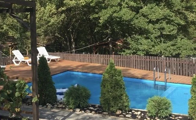 Открытый бассейн у дома с баней
